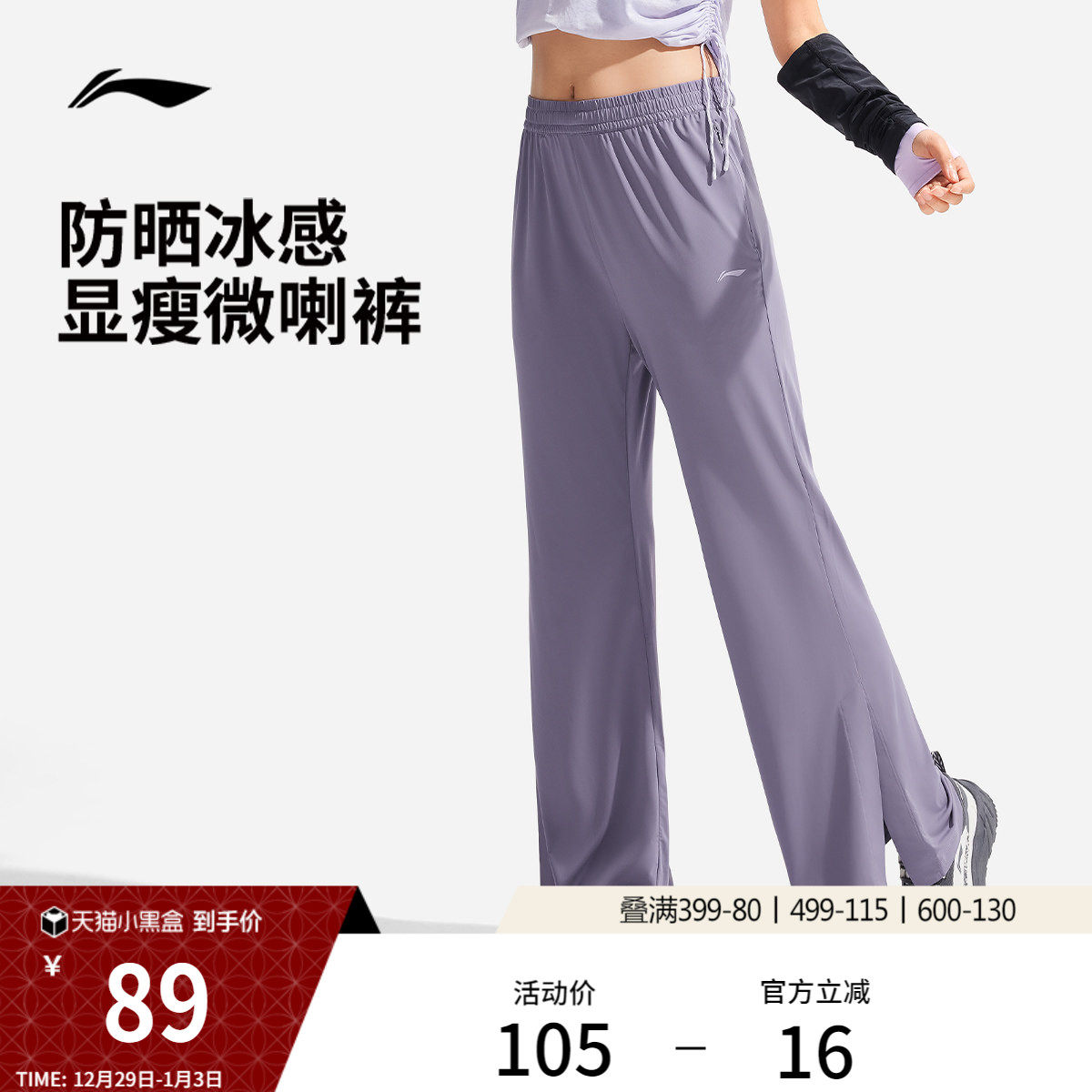 李宁阔腿裤女防晒速干裤训练健身长裤开叉微喇运动裤女款卫裤女