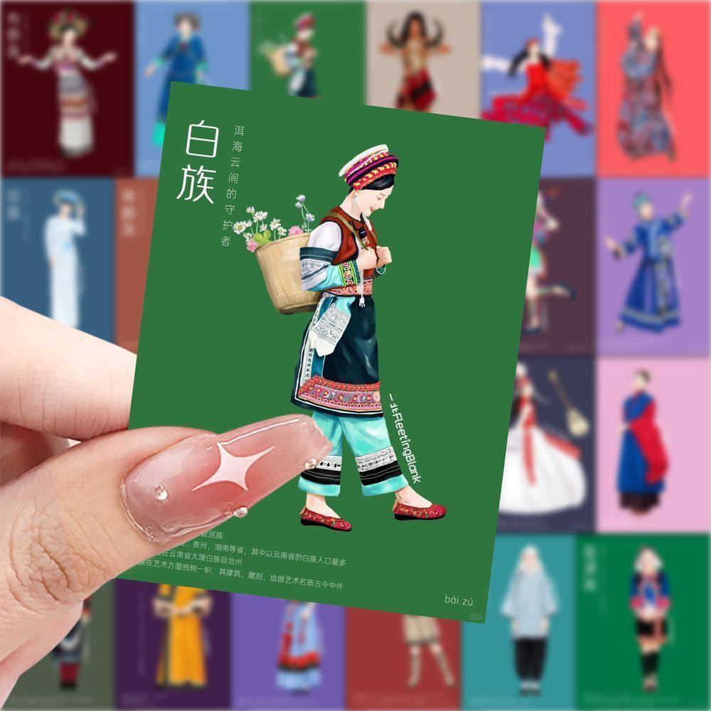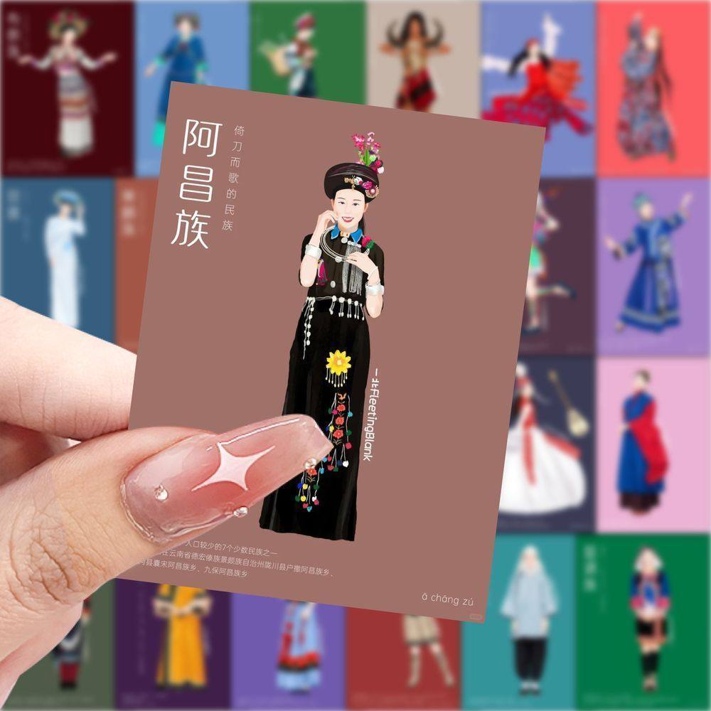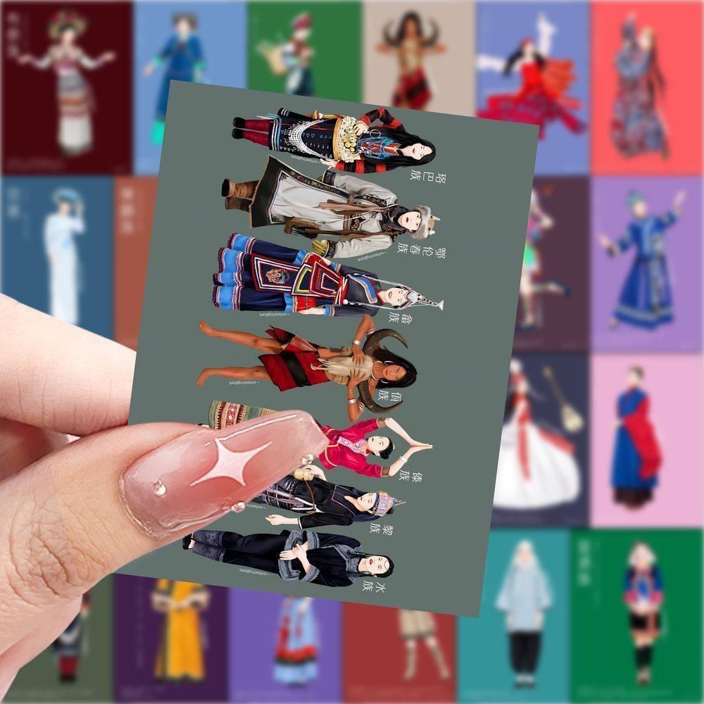 63张56民族科普贴纸国风中国服饰国潮女孩儿童装饰行李箱防水贴画