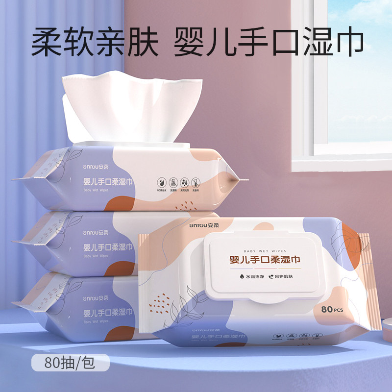 比比贝婴儿手口湿巾新生宝宝幼儿童专用湿纸巾家用实惠装大包80抽