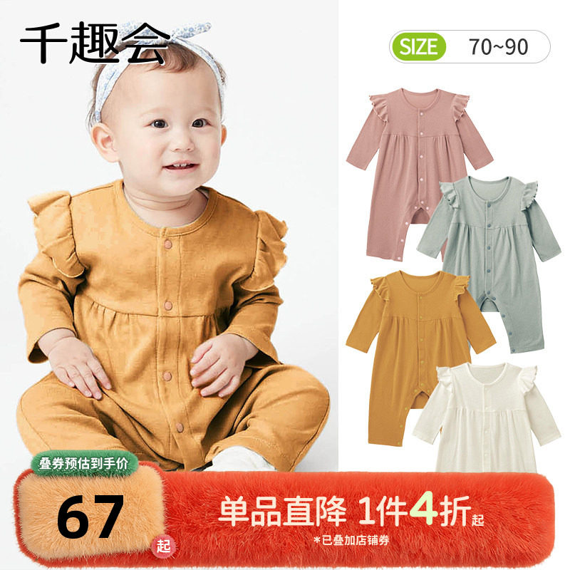 【天猫U先】千趣会秋季装婴童爬服荷叶边棉质长袖女童宝宝连体衣