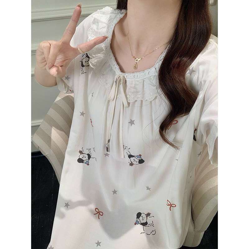 三福睡裙女款春夏季净雪花棉抗菌睡衣甜美印花宽松趣味短袖家居服