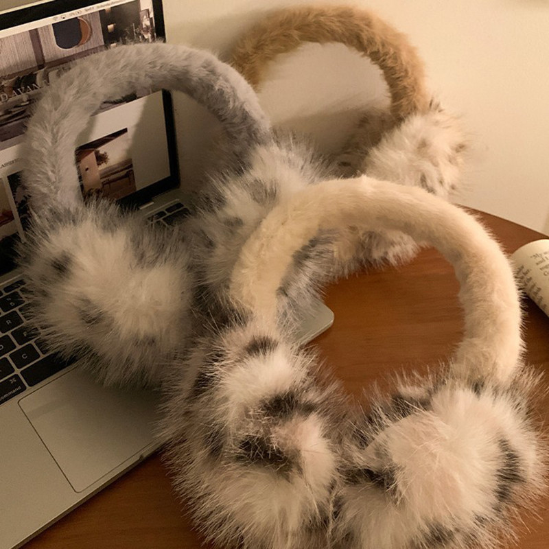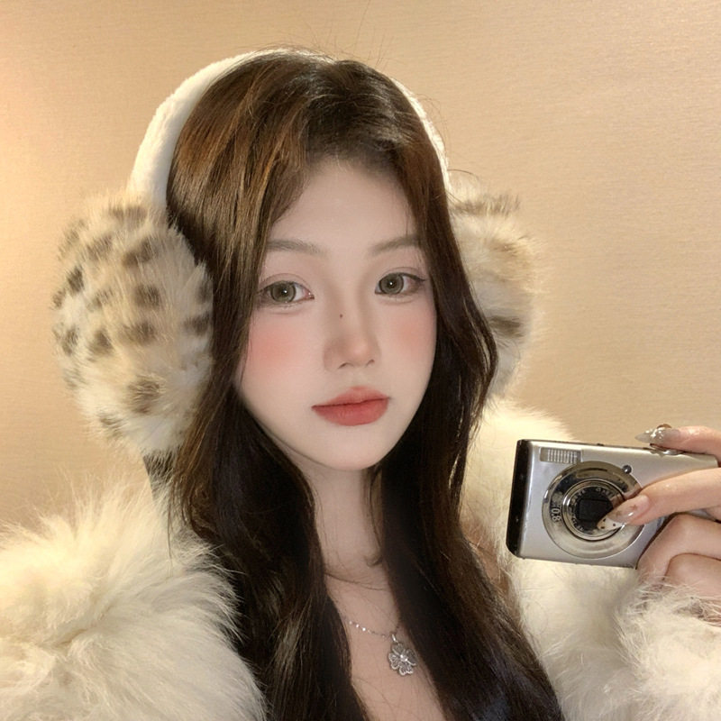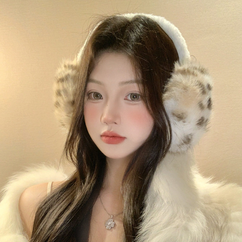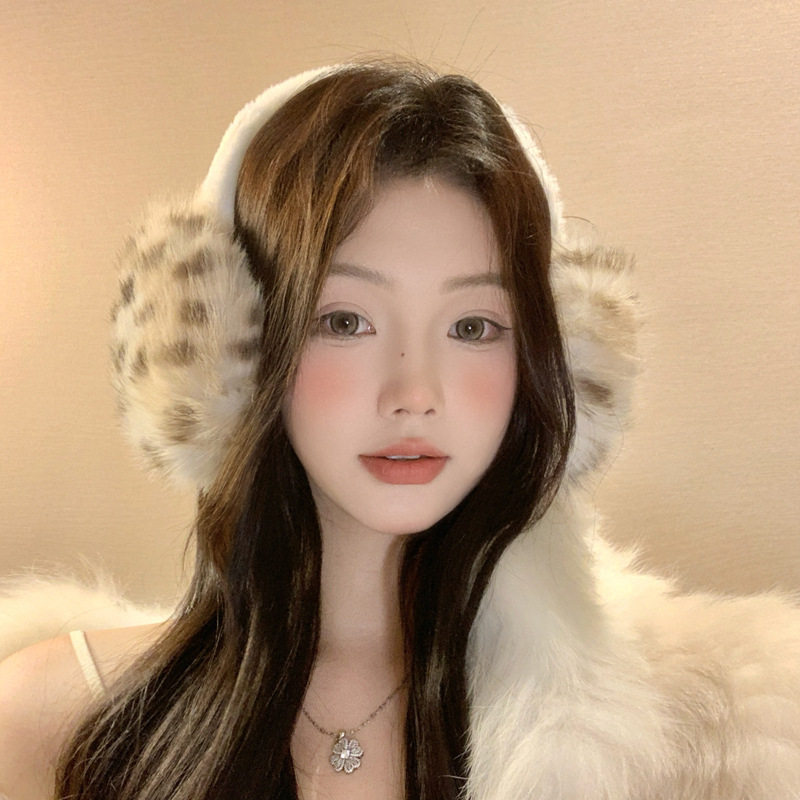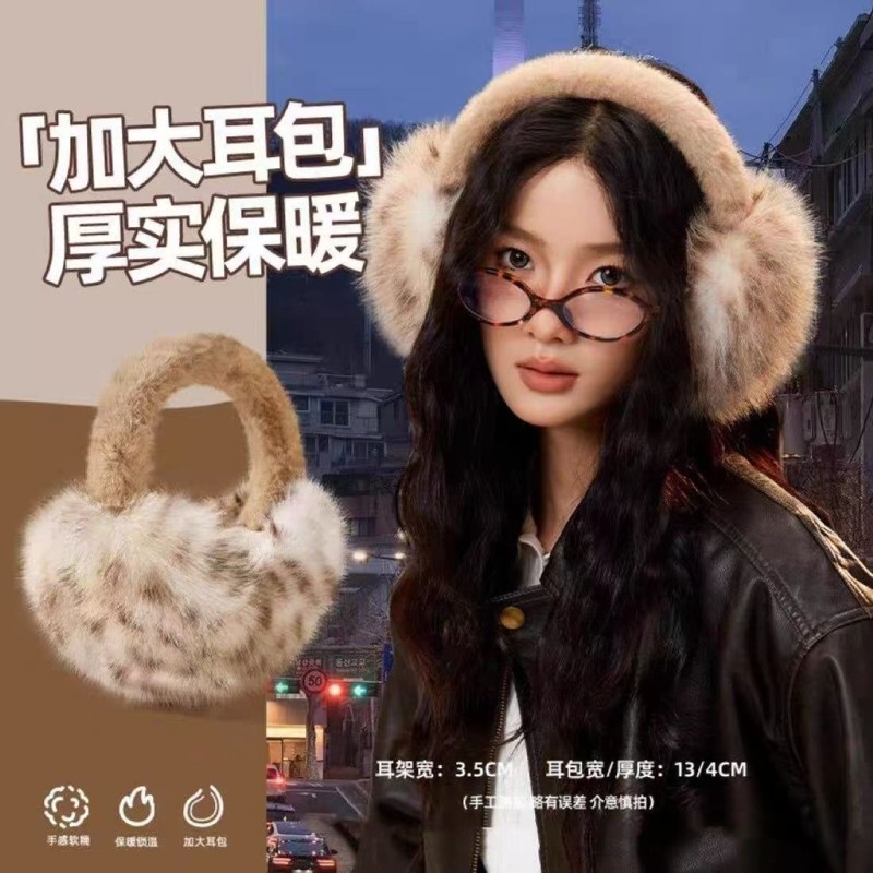 豹纹毛绒耳罩女冬季毛茸茸耳包耳套骑车防冻防寒保暖耳暖耳捂子