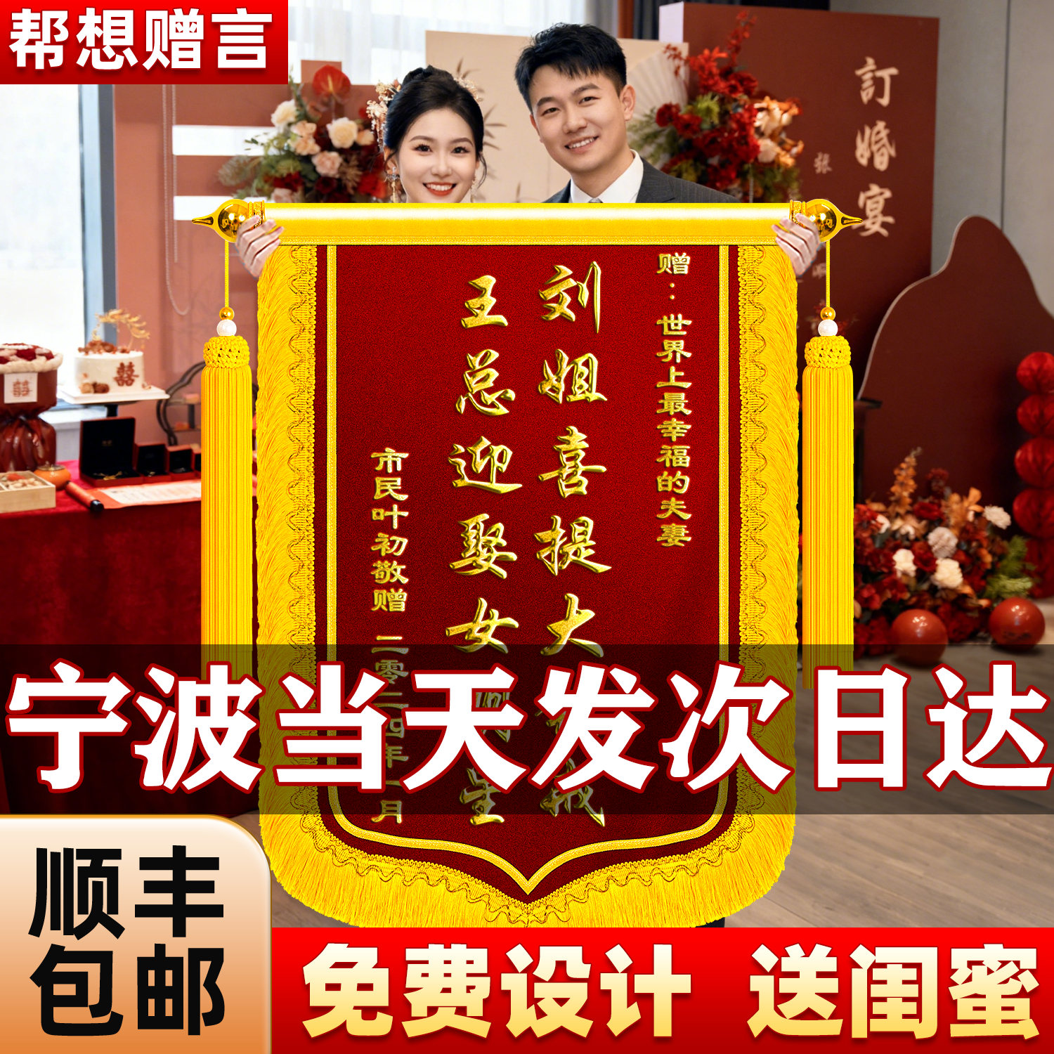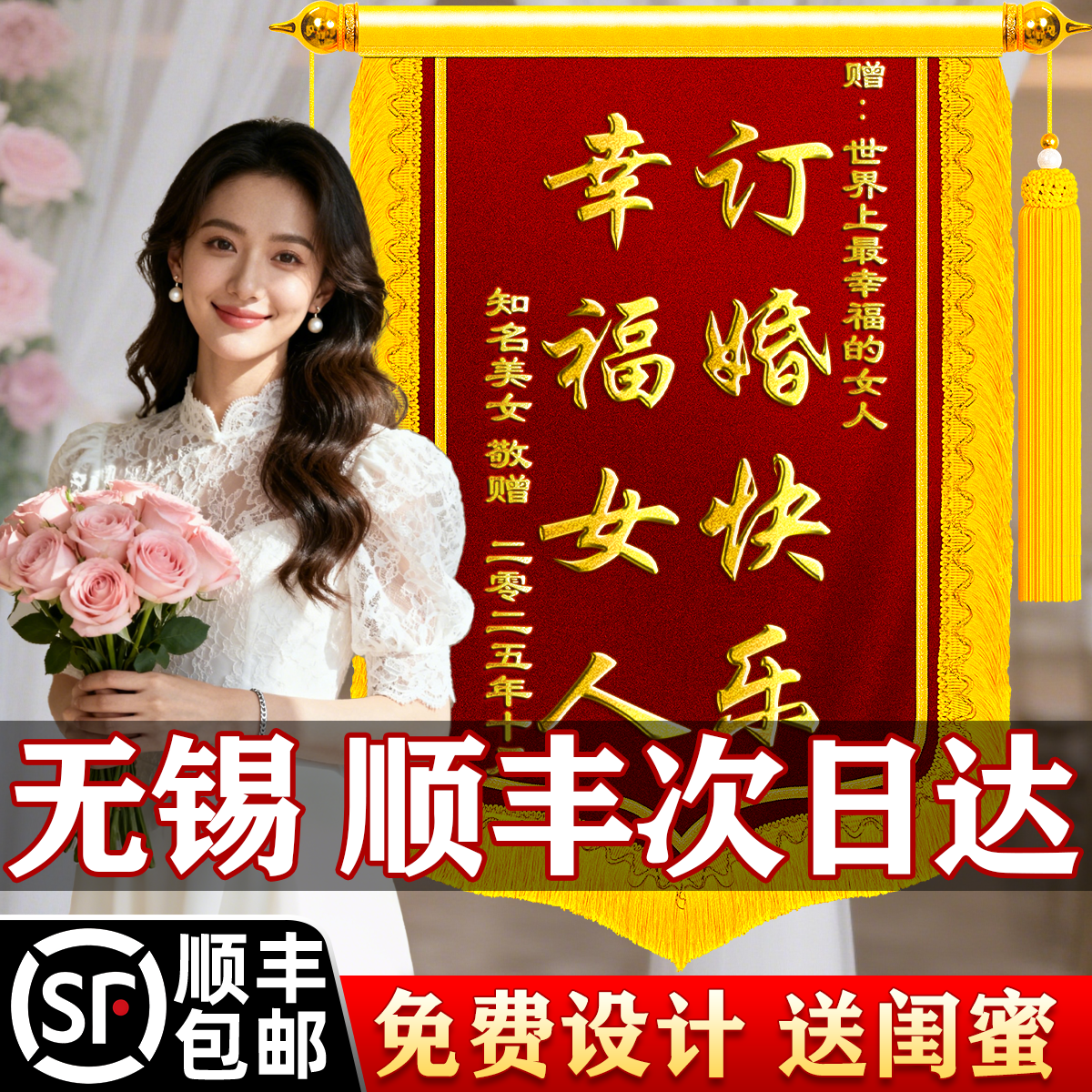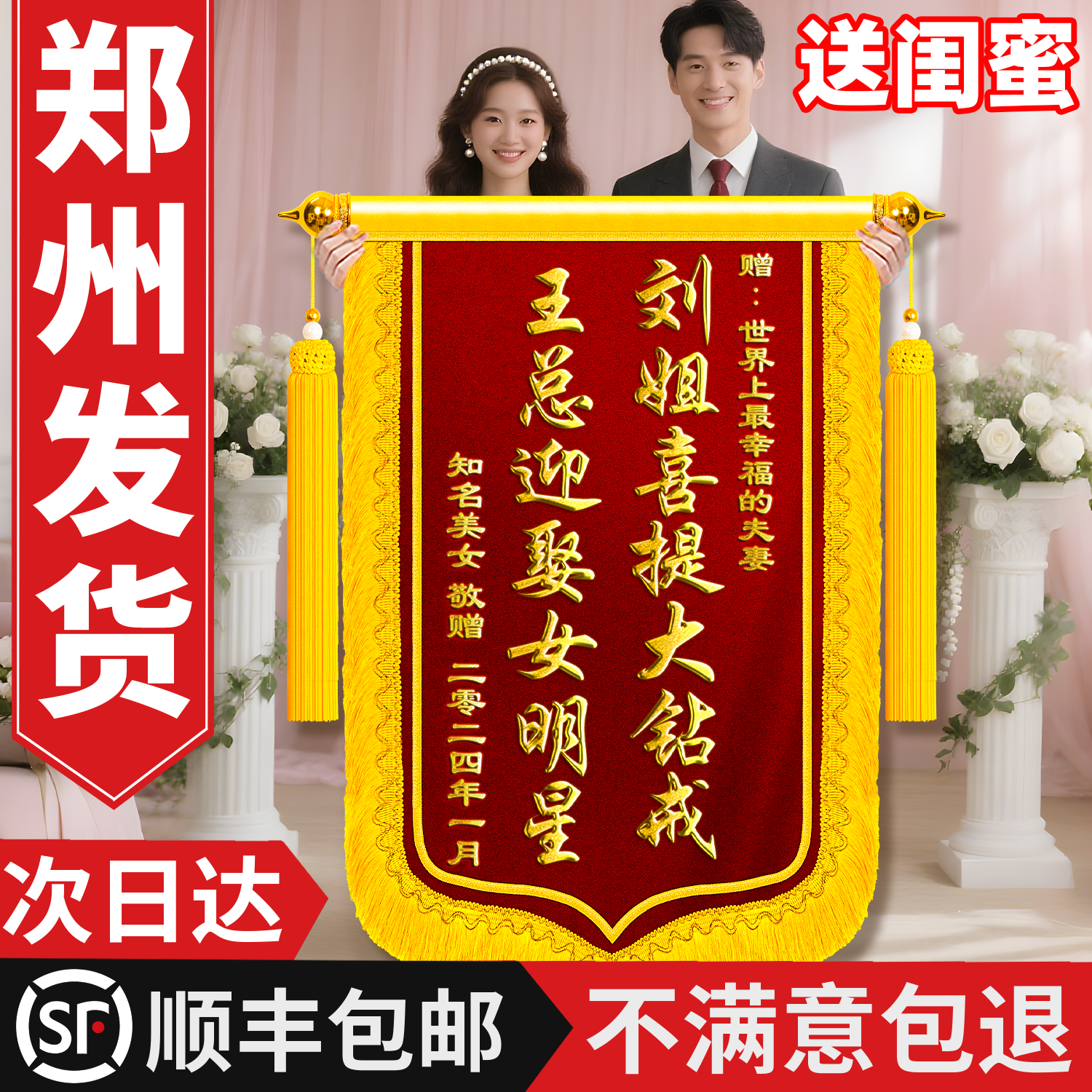 【青岛加急】锦旗定制定做送闺蜜结婚拍照道具订婚新婚祝福朋友亲人纪念日周年庆生日礼物高级的旌旗搞笑抽象