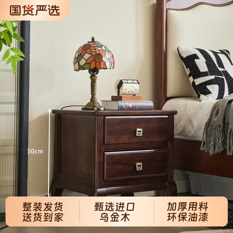 乌金木实木床头柜卧室家用小型新中式高级感床边柜收纳柜子