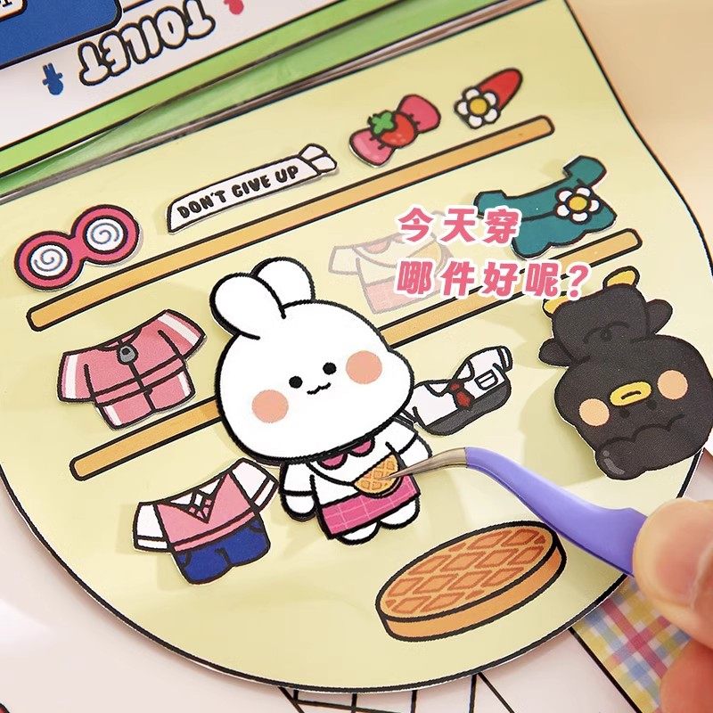 萌崽新款学霸学渣果冻贴纸安静书儿童免裁剪手工粘贴DIY女孩趣味玩具