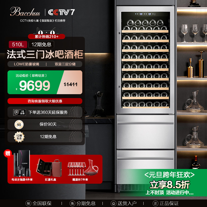 Bacchus/芭克斯YC-510D恒温红酒柜酒柜家用风冷冰吧嵌入式豪华