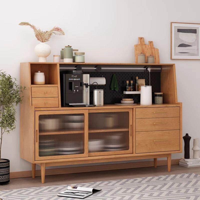 北欧实木餐边柜小户型高柜简约现代玻璃收纳柜日式家用多功能碗柜