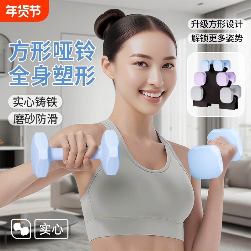 方形新款小哑铃男女士健身家用器材瘦肚减肥锻炼实心铸铁3kg一对