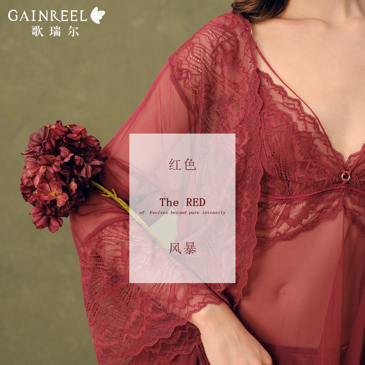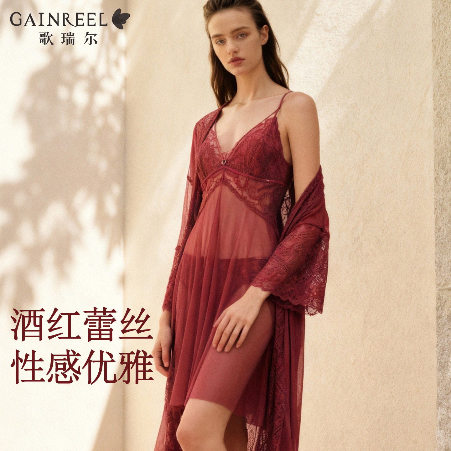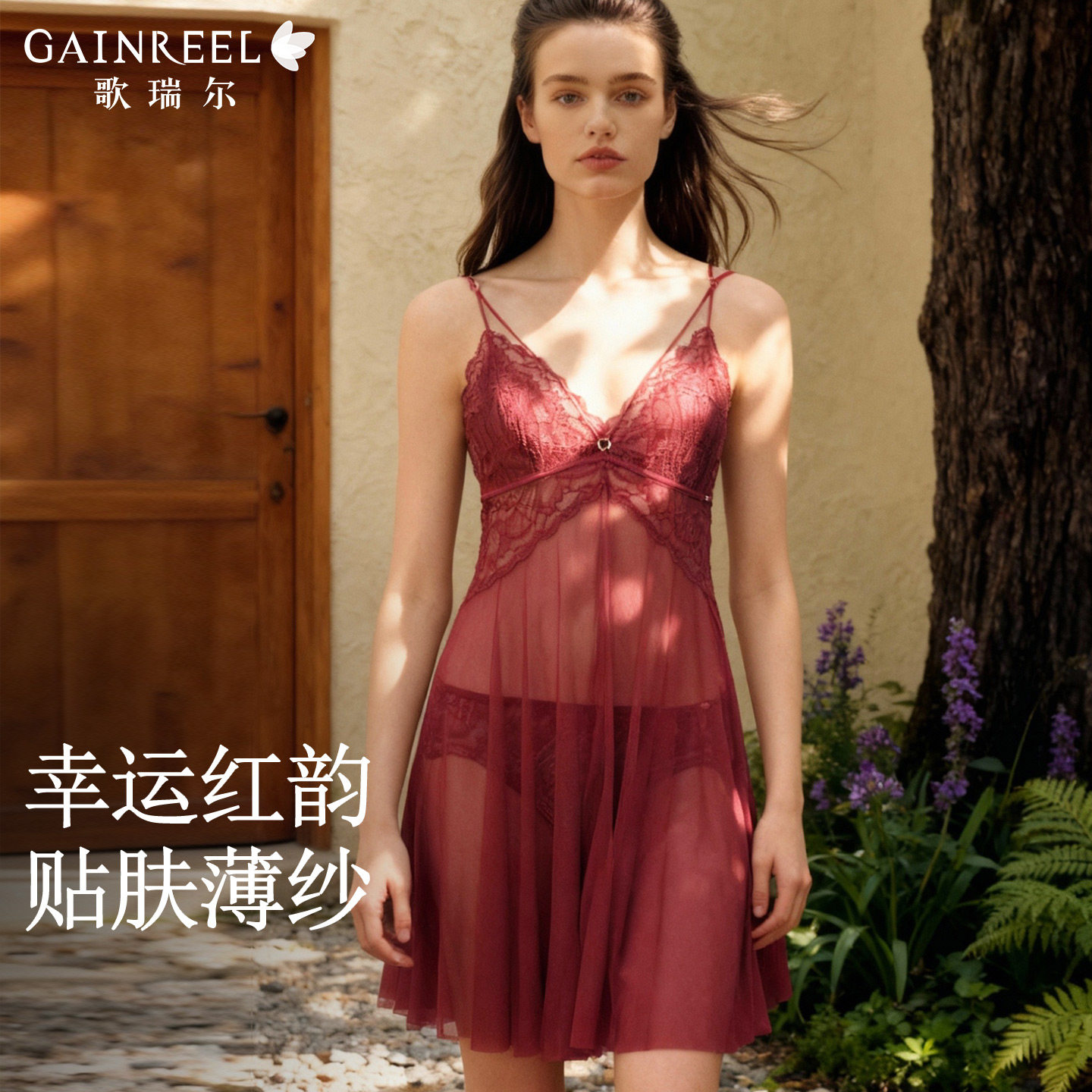 歌瑞尔新款红色结婚新娘睡衣女睡裙性感吊带美背法式蕾丝家居服