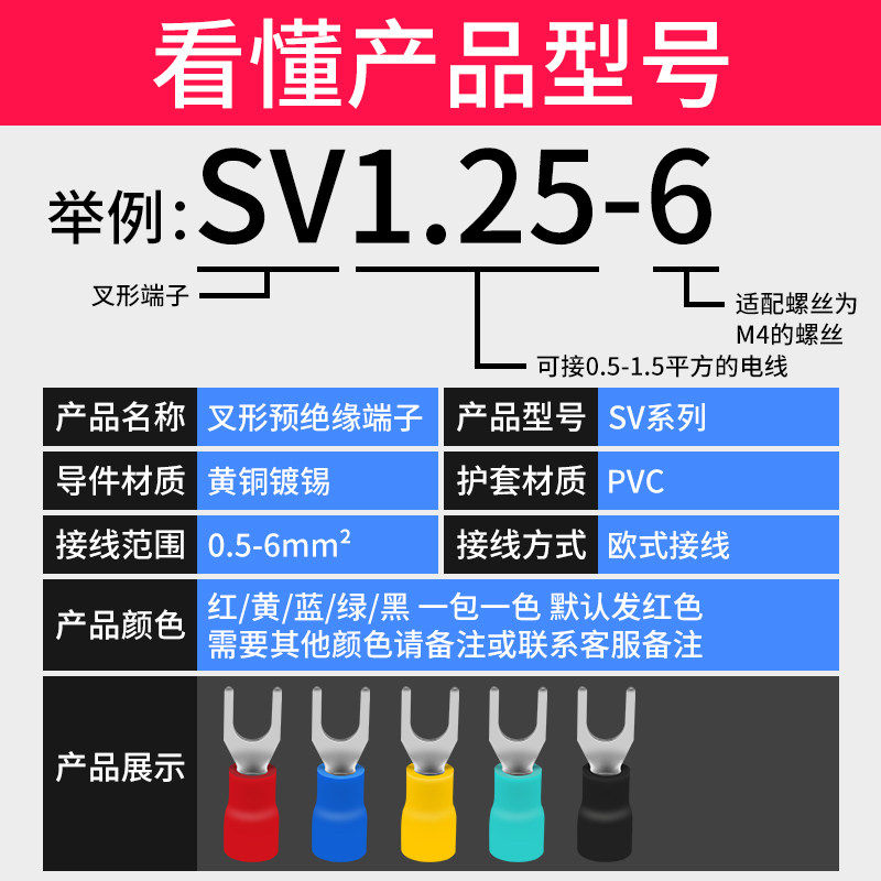 SV1.25-3/4S叉型接线端子冷压接头Y形U型端头电线欧式线耳铜鼻子