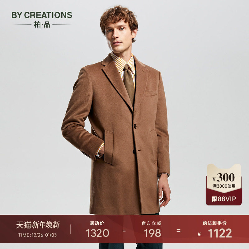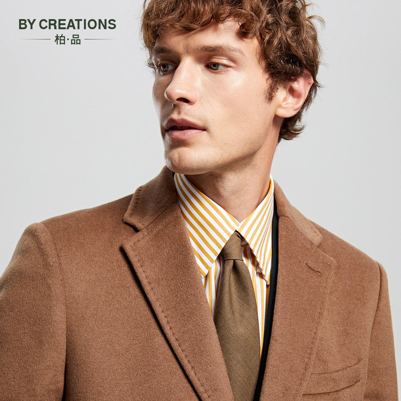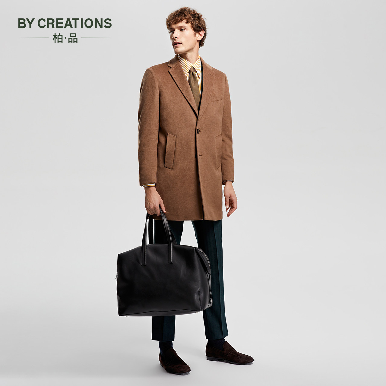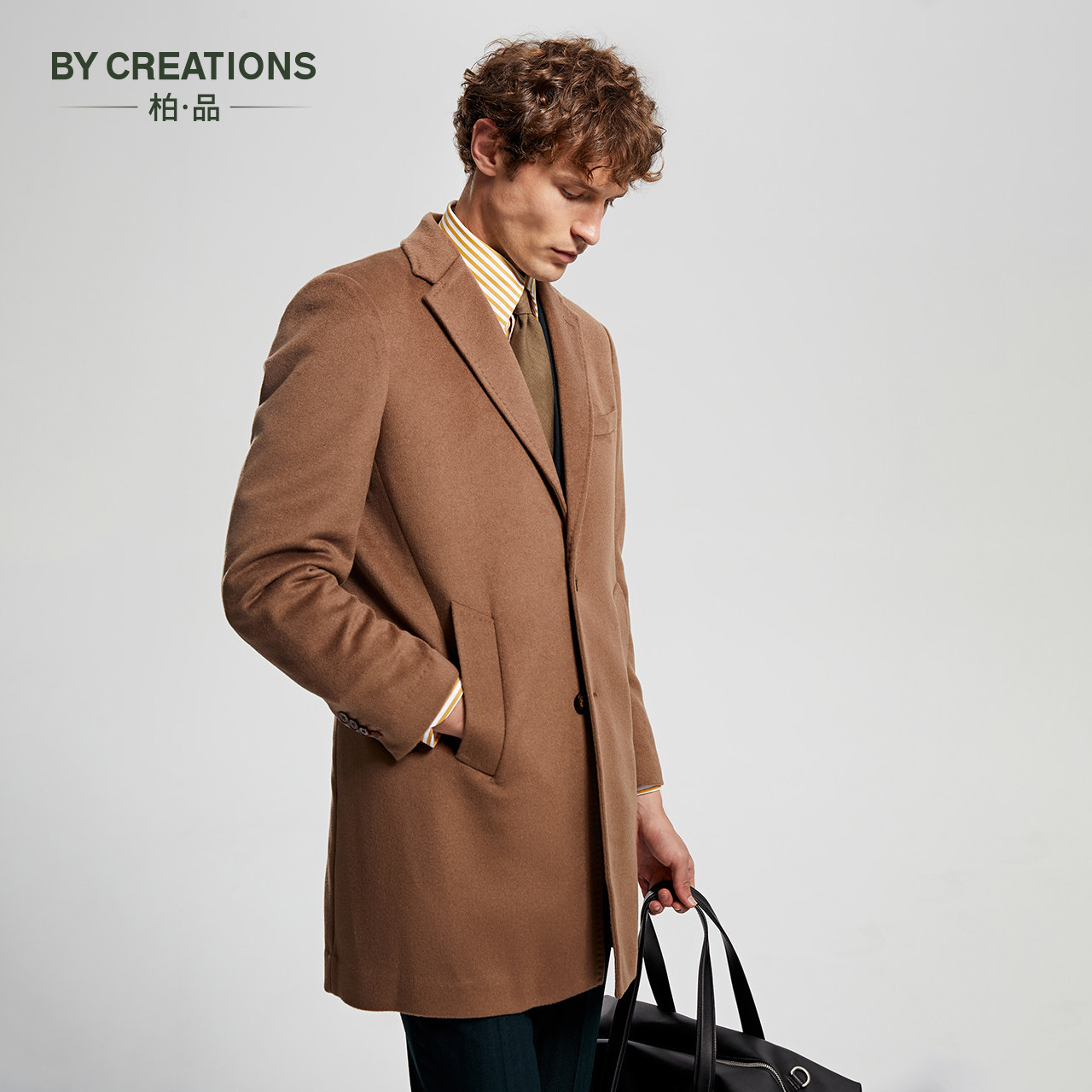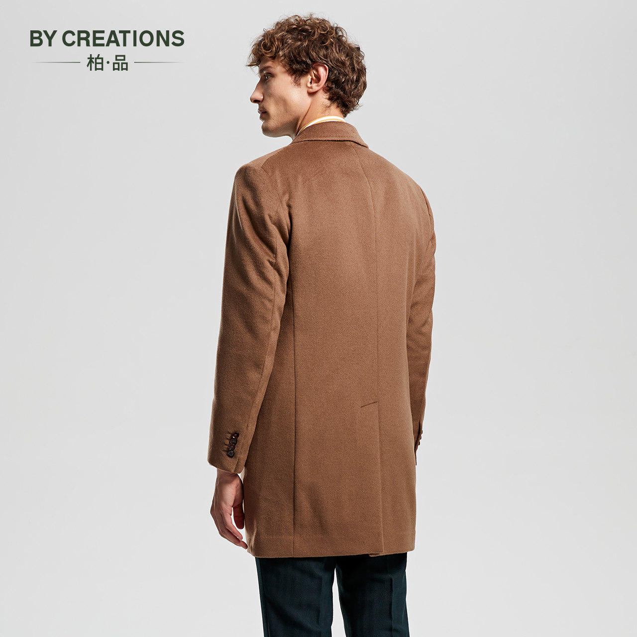 柏品纯澳洲羊毛切斯特菲尔德驼色大衣男士中长款翻领商务毛呢外套
