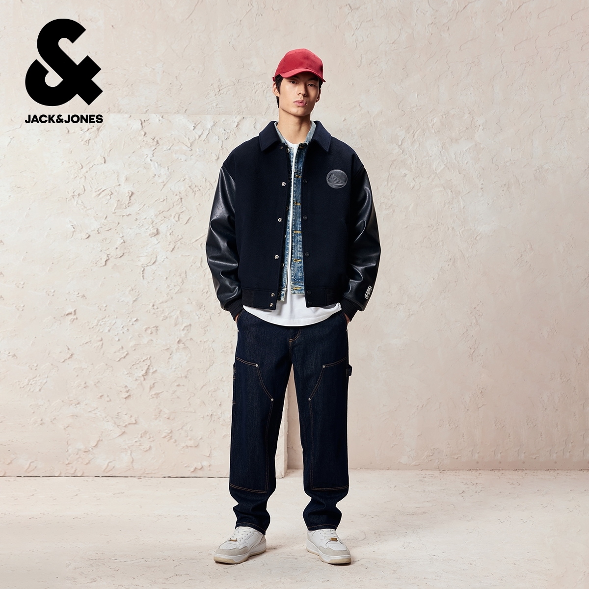 杰克琼斯男装秋冬毛呢大衣2025年新款NBA联名翻领按扣长袖外套