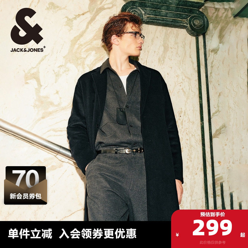 杰克琼斯毛呢大衣男秋冬含羊毛新款通勤休闲商务中长夹克上衣男装
