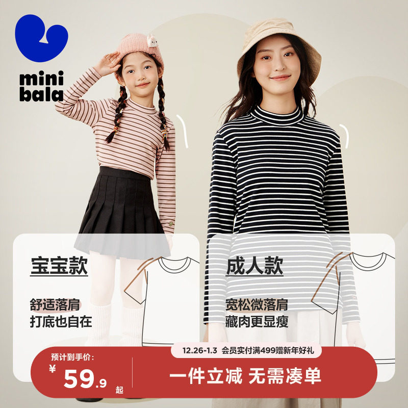【半高领T恤】迷你巴拉巴拉儿童亲子春秋打底T恤一家三口