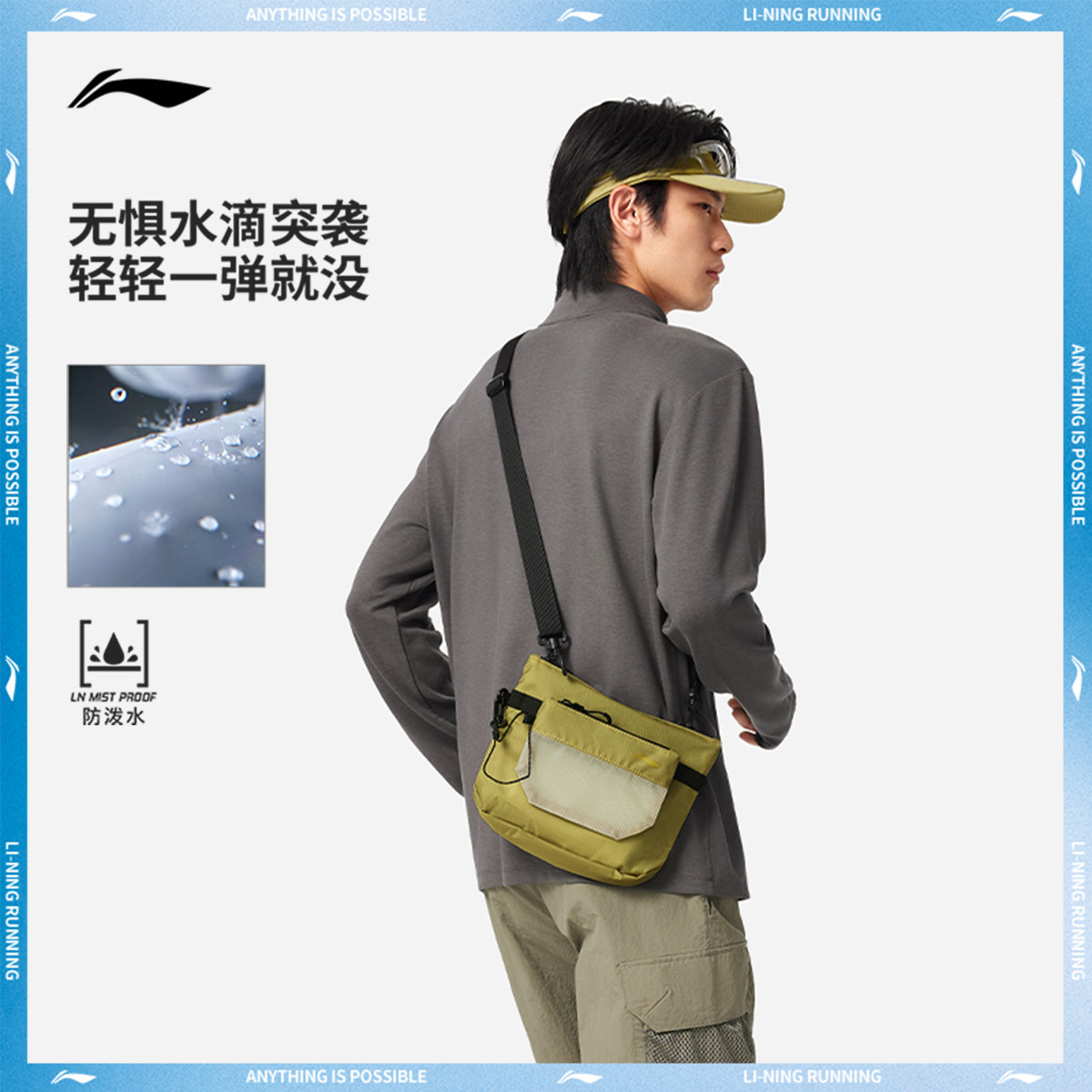 李宁斜挎包男包女包2025新款跑步系列反光运动包
