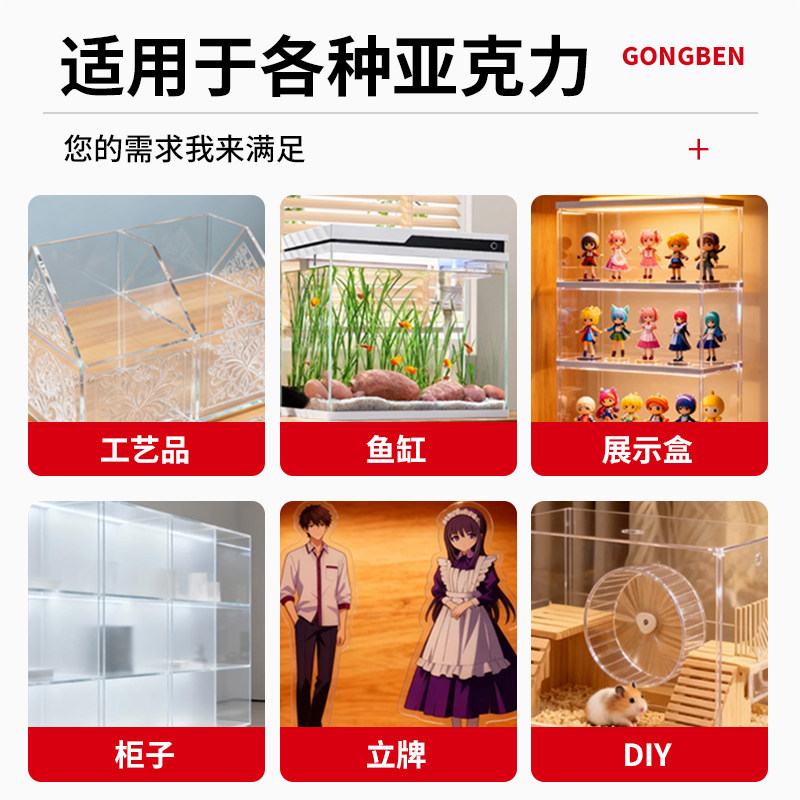 亚克力专用胶粘亚克力板PMMA有机玻璃鱼缸胶修补胶PLA PC板专用粘合剂快干透明UV无影胶无痕胶强力万能胶水