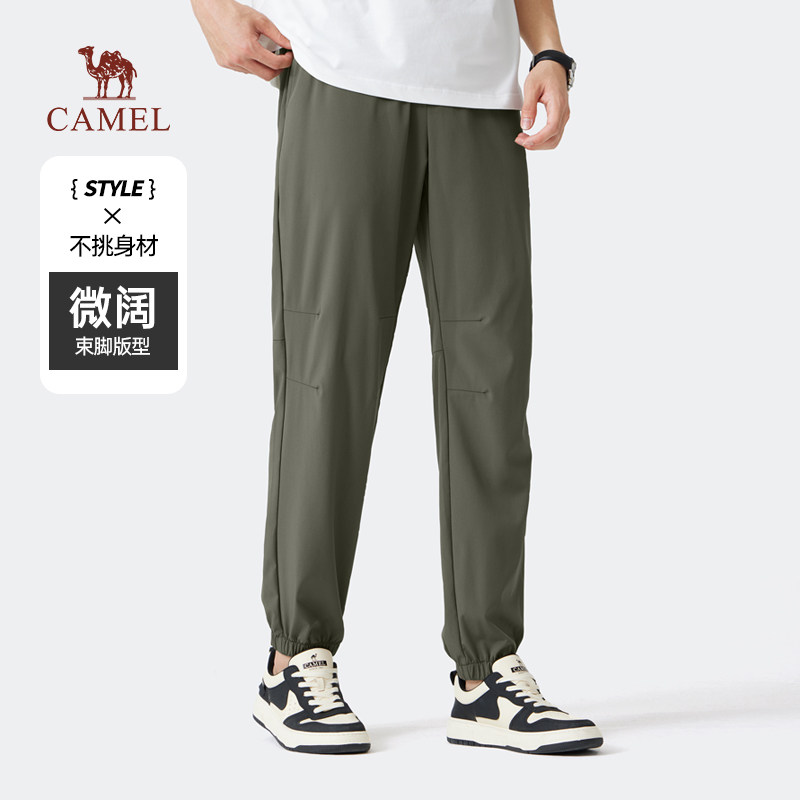 Camel/骆驼男裤夏季薄款宽松弹力速干运动裤男休闲裤子冰丝束脚裤