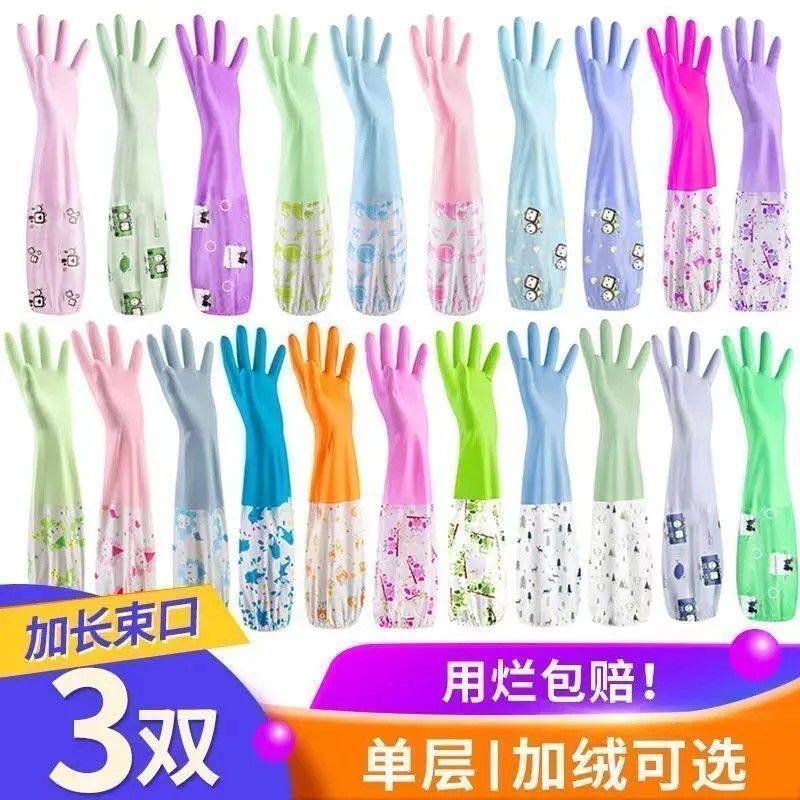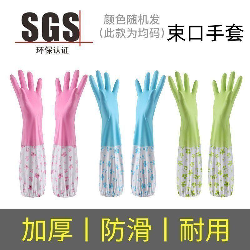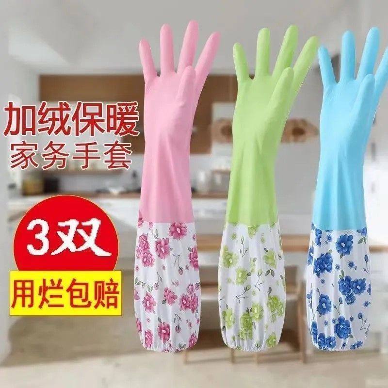 洗碗手套女冬洗衣服厨房加厚加绒橡胶乳胶防水家用洗车束口袖手套