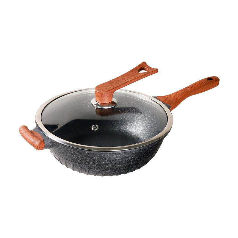 赫巴兹麦饭石炒锅不粘锅家用炒菜锅多功能平底锅电磁炉通用送蒸笼