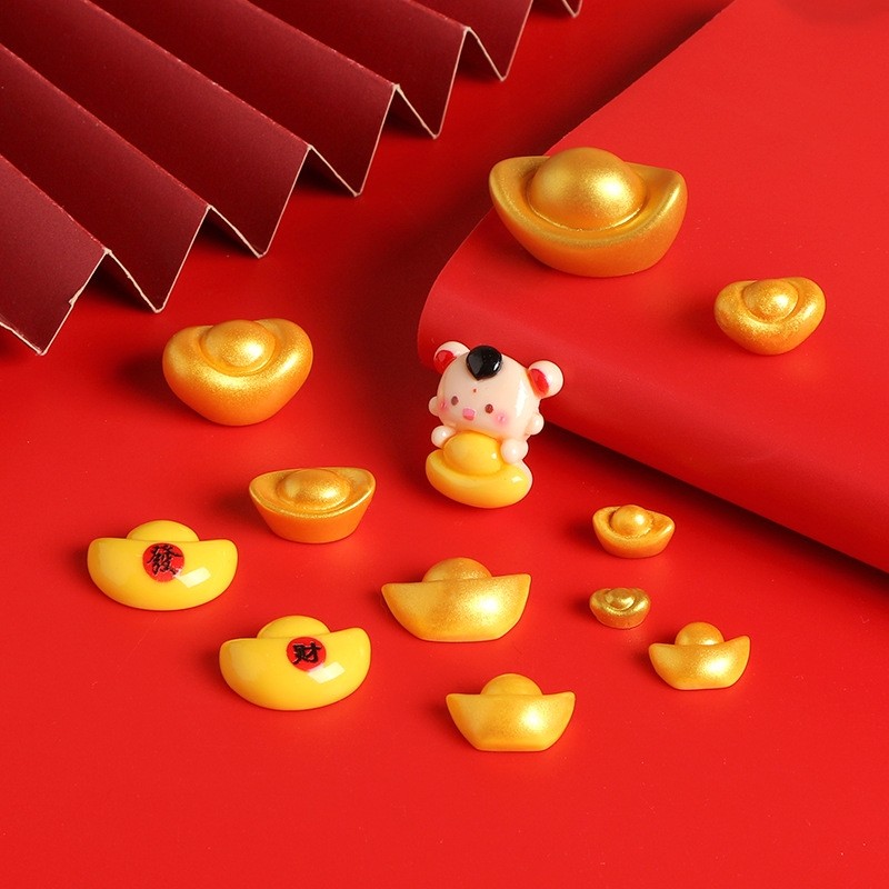 立体树脂新年发财大小金元宝diy饰品小配件桌面车载装饰小摆件
