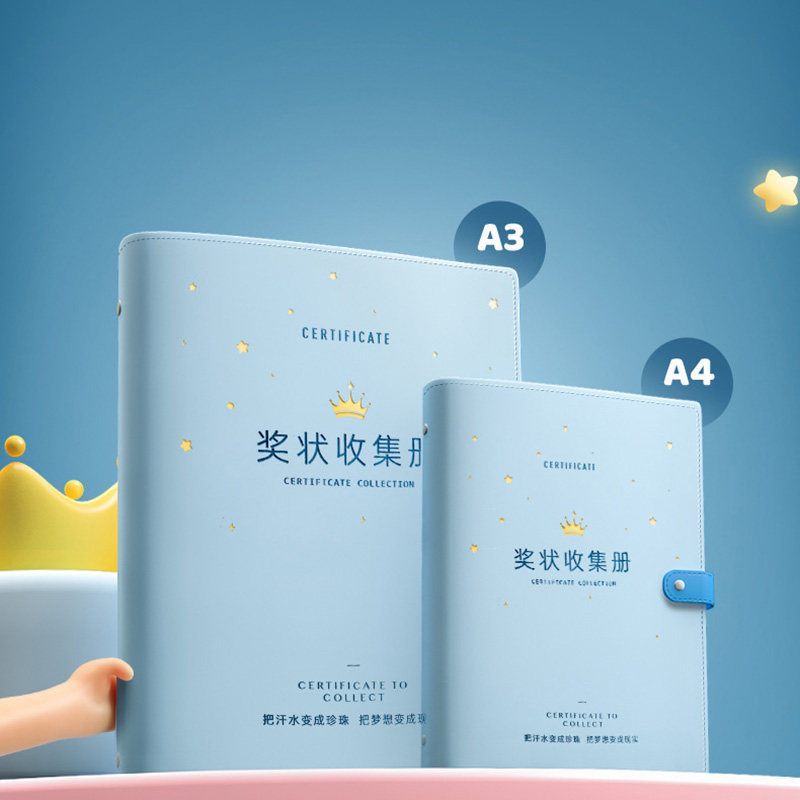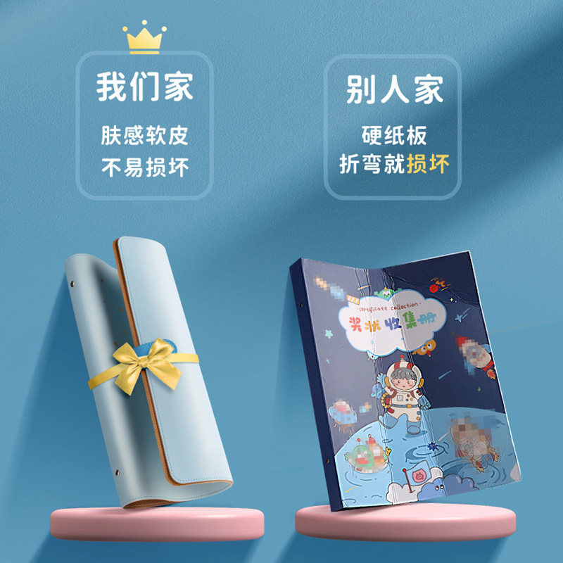 a4皮面奖状收集册男孩女孩a3荣誉证书装收纳小学生用文件夹的画册儿童收藏袋盒夹放作品相册本多功能册子展示