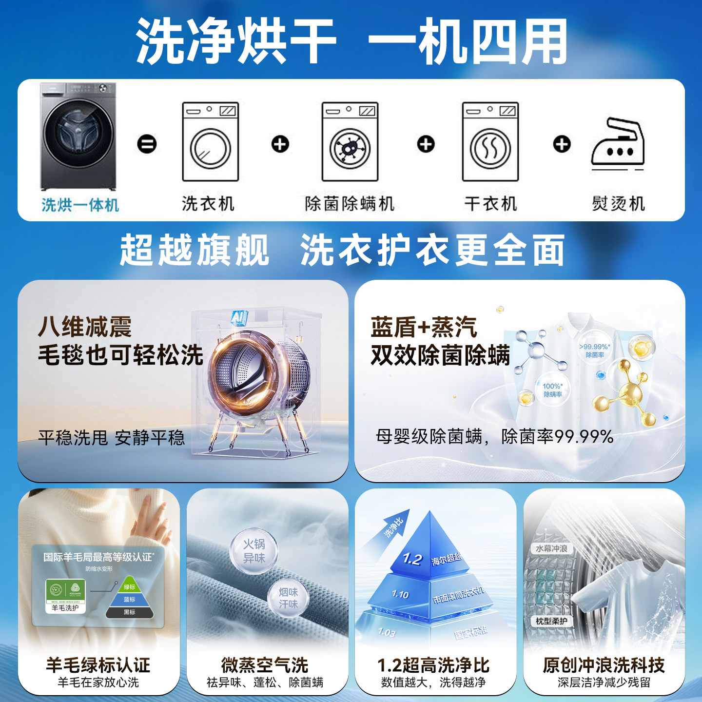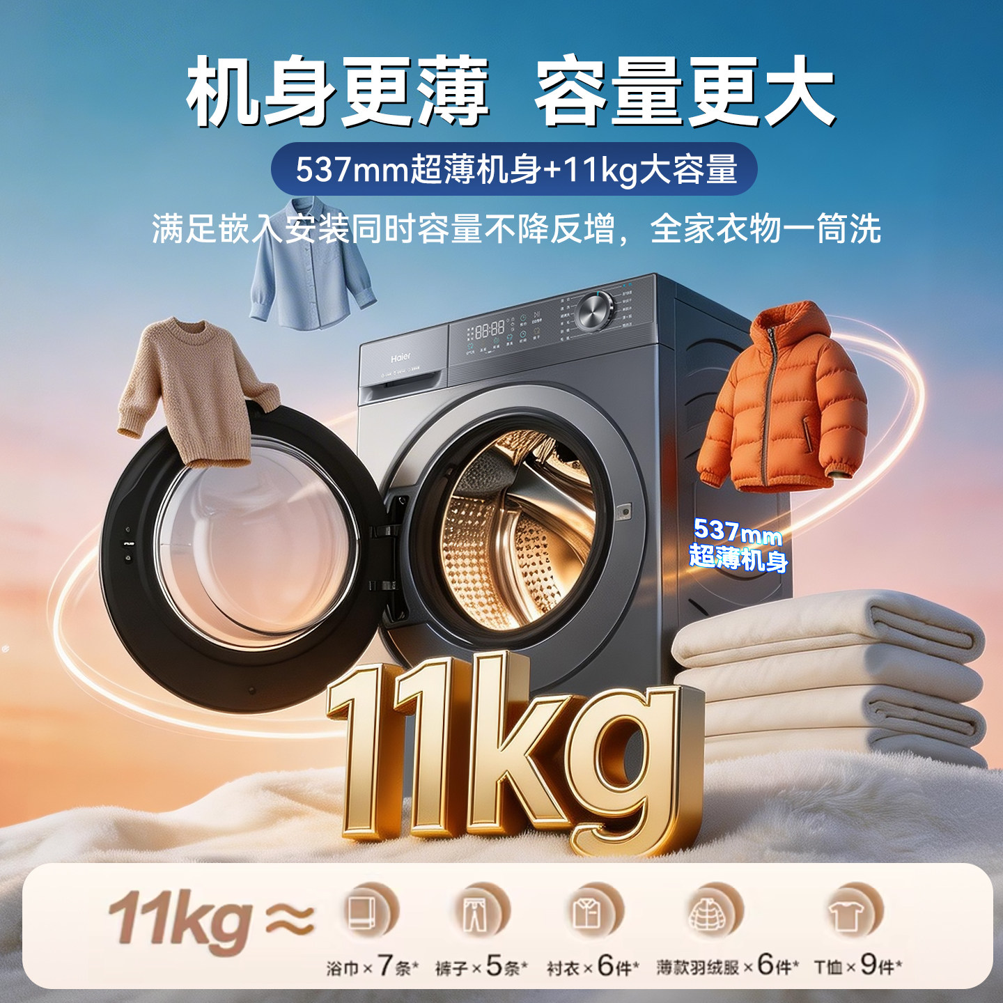 海尔小红花滚筒洗衣机11/13kg大容量洗烘一体超薄家用58E1旗舰店