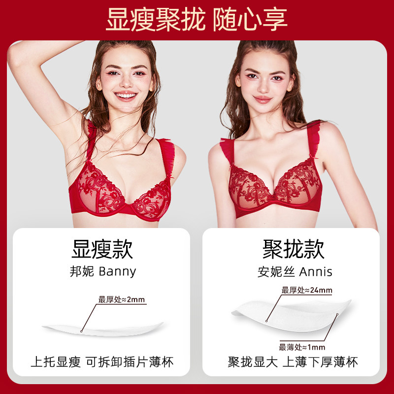 【宋轶同款风巢杯】安莉芳透气文胸大胸显小本命年红小胸聚拢内衣