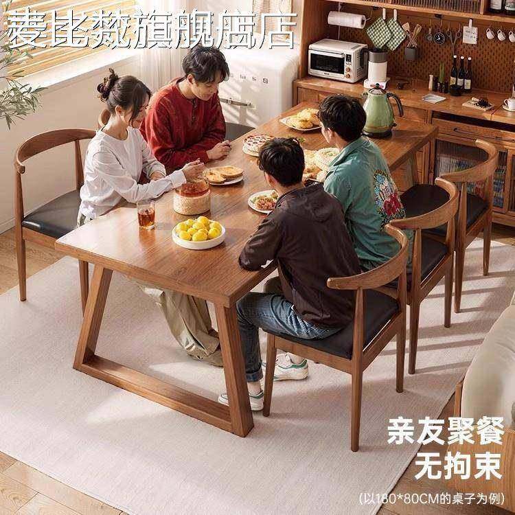 麦比梵胡桃木色餐桌家用小户型吃饭桌子长方形简约饭店桌商用餐桌椅组合床笠拉车