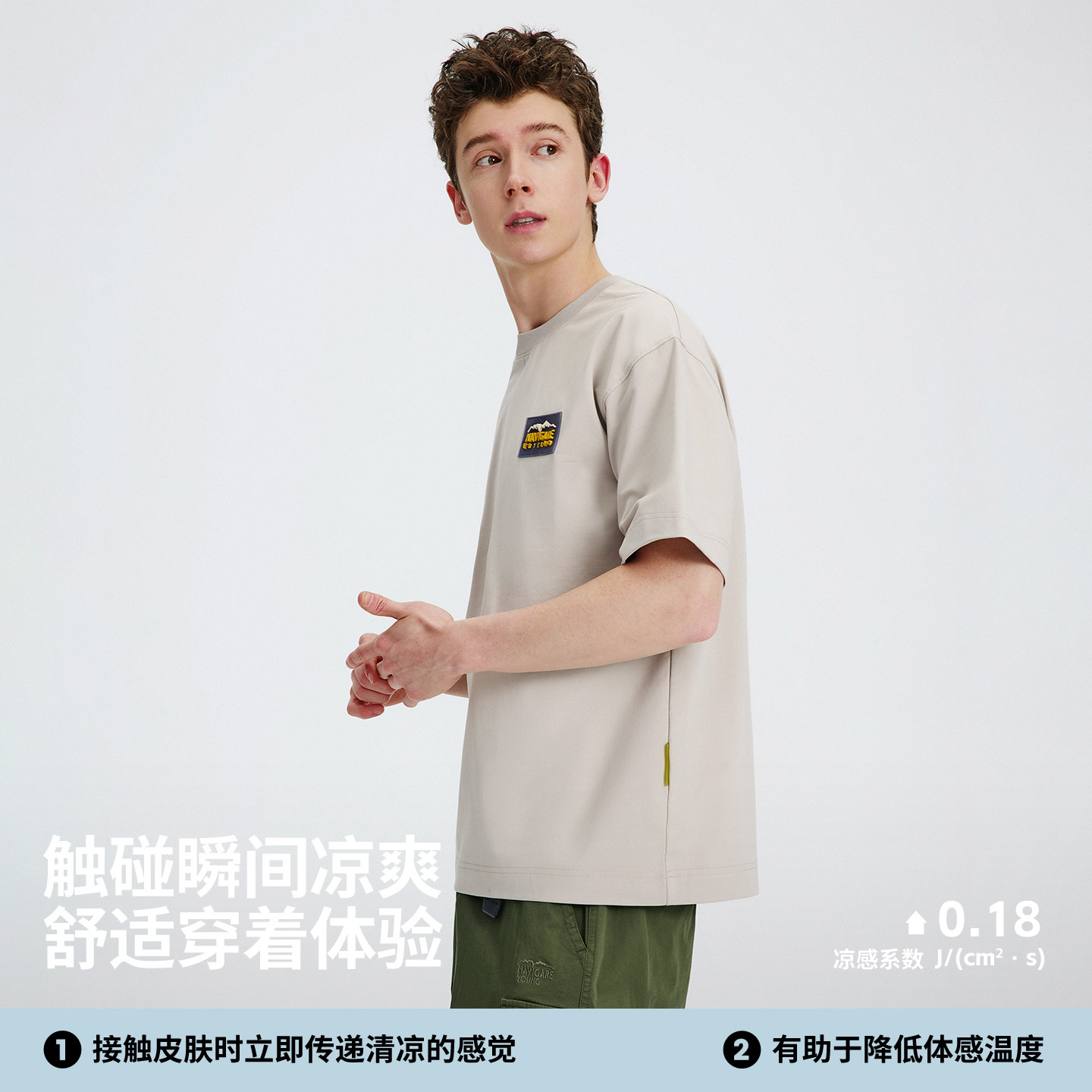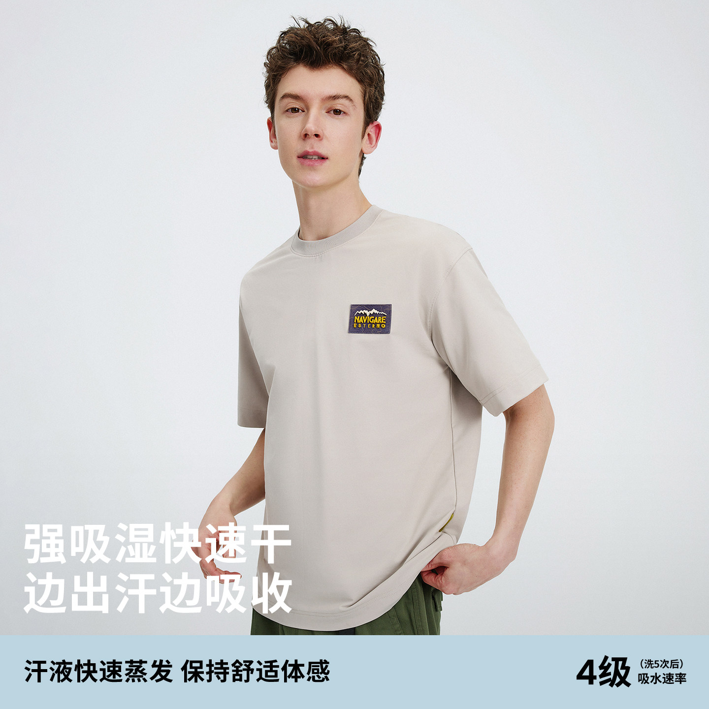Navigare意大利小帆船灰色凉感T恤男短袖2026夏季宽松套头体恤衫