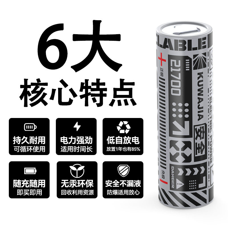 DOKIY充电电池5000毫安3.7V大容量21700平头锂电池