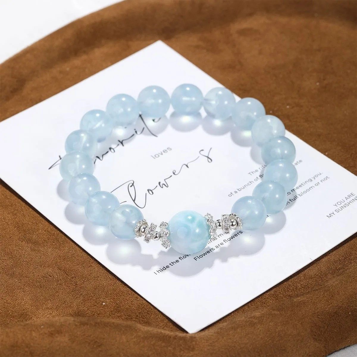 原创天然海蓝宝水晶手链雪花幽灵手串女轻奢甜美小红书小清新小众