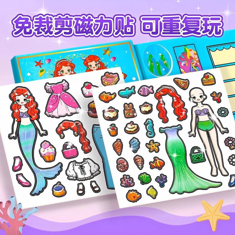 美人鱼磁力安静书新款女孩公主贴画书玩具2025年新款换装磁吸贴纸