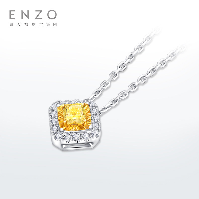 ENZO「商场同款」18K金镶方形黄钻钻石项链女 EZU2748节日礼物
