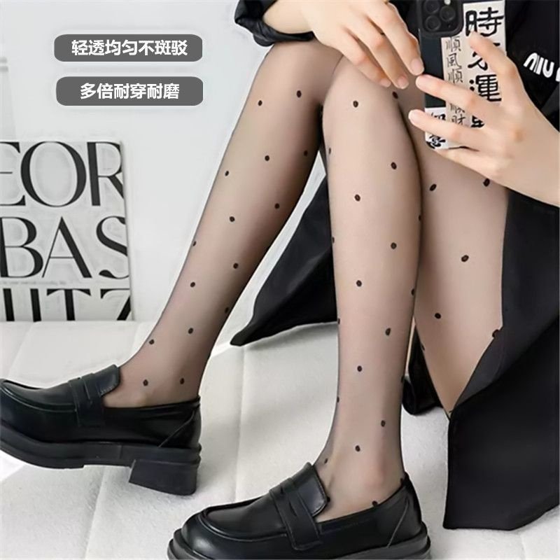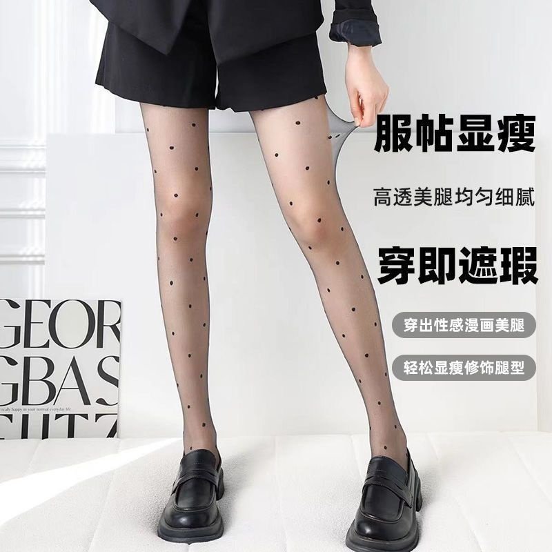 波点黑丝袜女0D高透隐形无痕春秋款防勾丝jk光腿神器连裤袜超薄