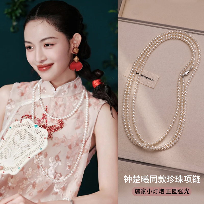 珍珠项链长款毛衣链叠戴女款2025新款轻奢小众颈链配旗袍多层精致