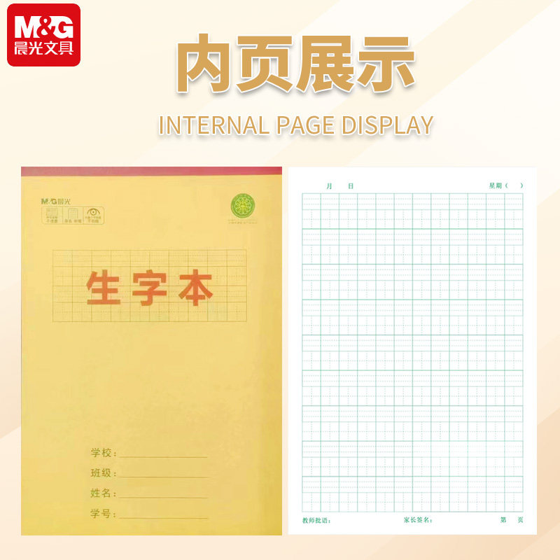 晨光生字本16K拼音田字格本小学生三年级初中生学科作业本书写牛皮纸生字练习本加厚护眼纸张不透墨书写流畅