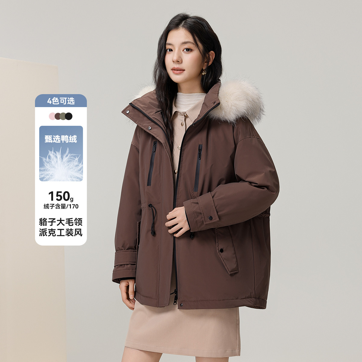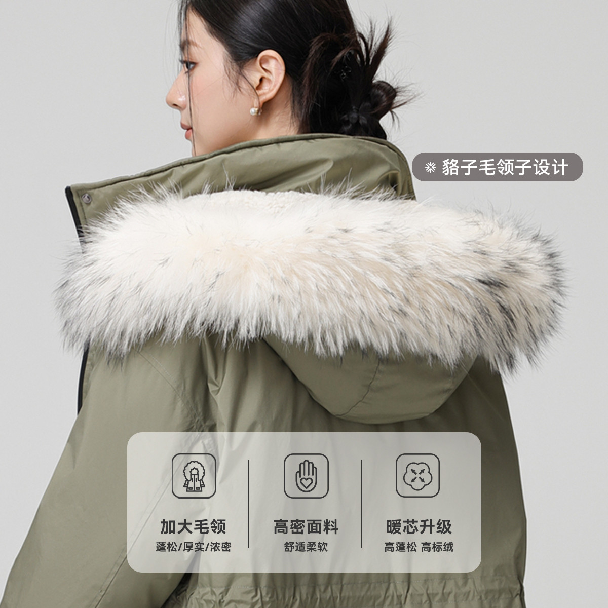 【李佳琦直播间】雪中飞2025鹅绒男女貉子毛领复古工装派克羽绒服
