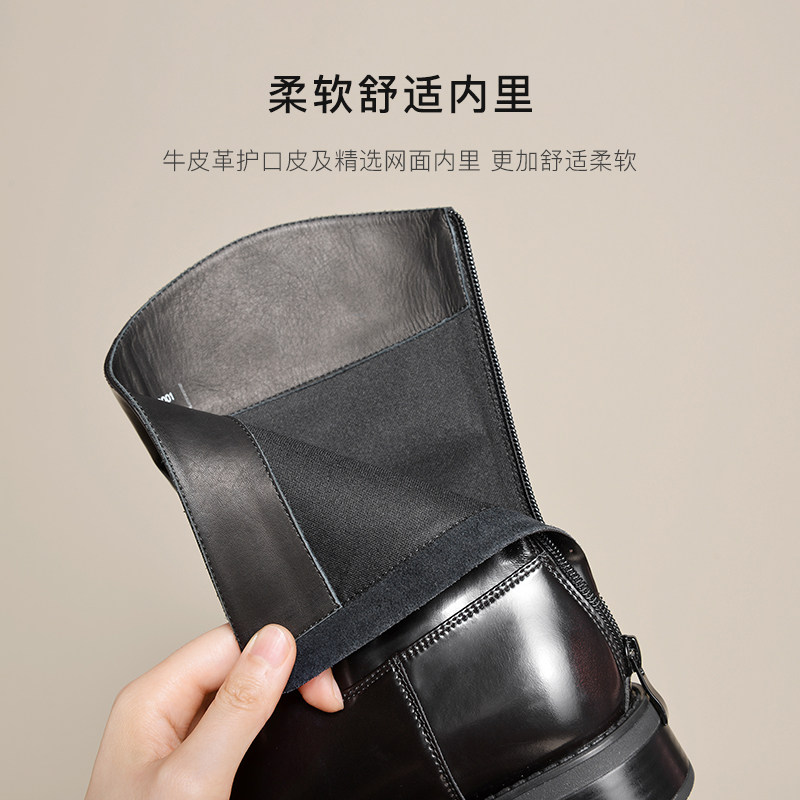 牛皮版~内增高复古短靴女2025秋冬西部马丁靴圆头短筒勃肯堆堆靴