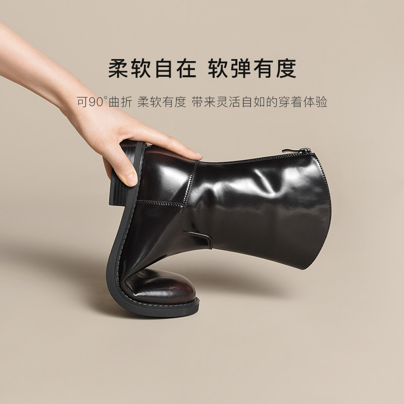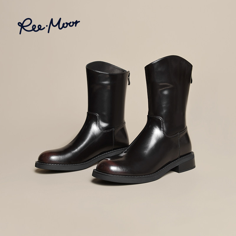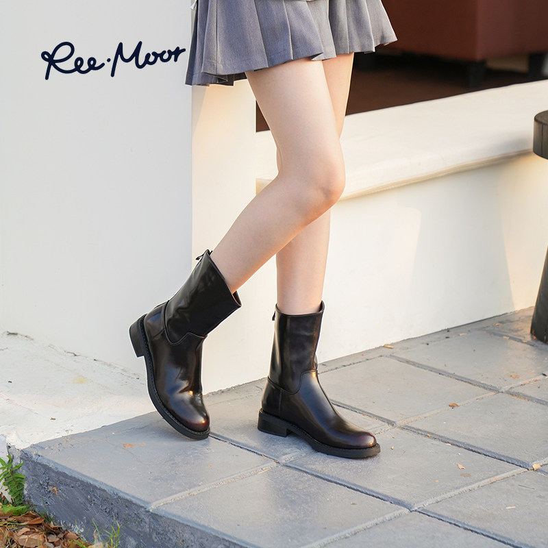 REEMOOR睿慕2025新款气质法式百搭粗跟时装靴优雅圆头女短靴