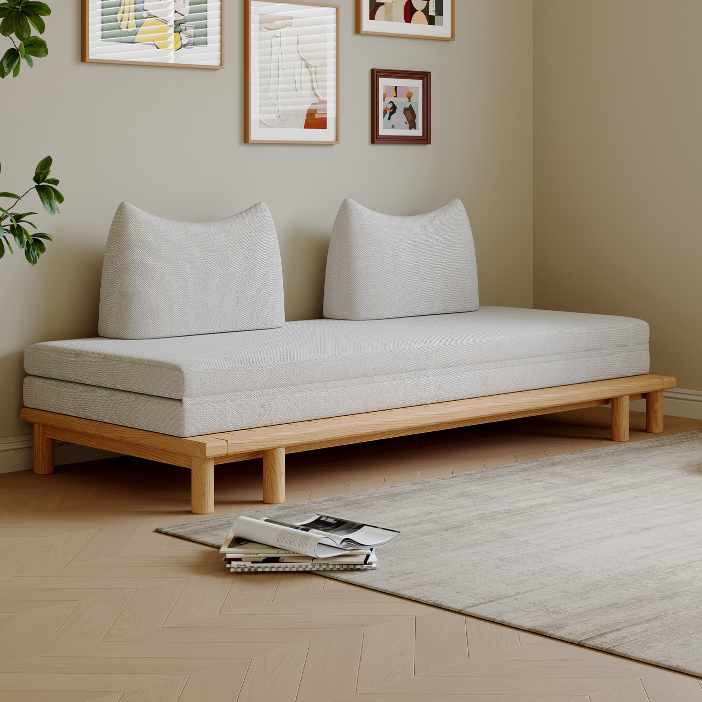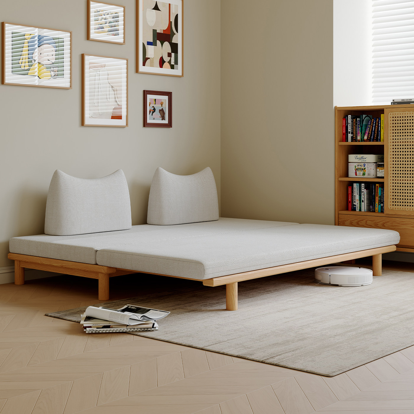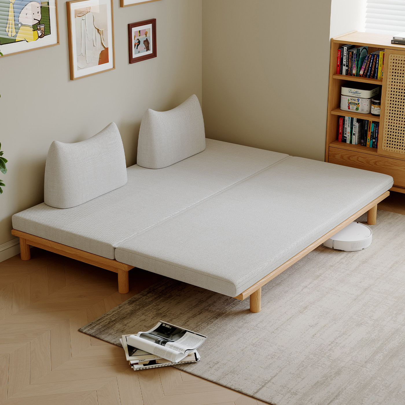 司朴北欧日式原木奶油风不倒翁沙发小户型客厅卧室伸缩折叠沙发床