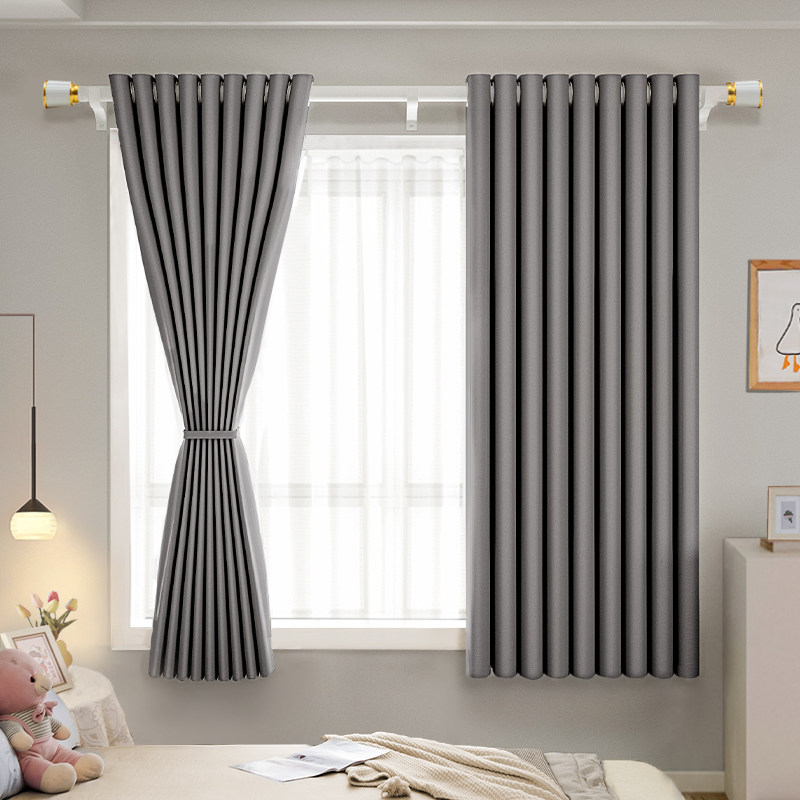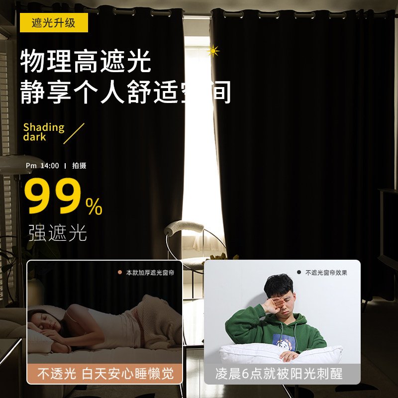 窗帘遮光布2025新款卧室高级感轻奢纯色落地帘高遮光遮阳防晒帘子