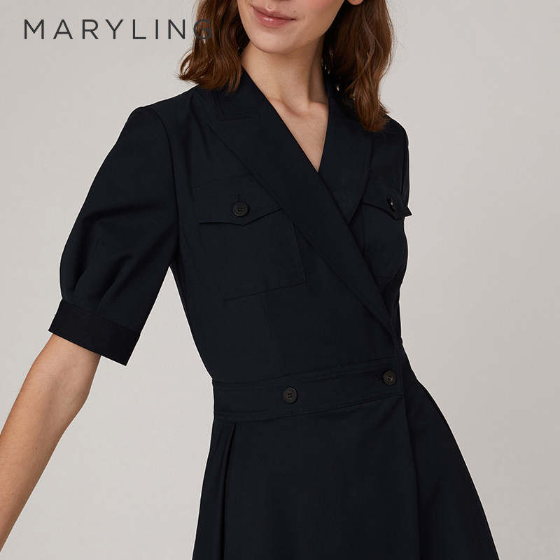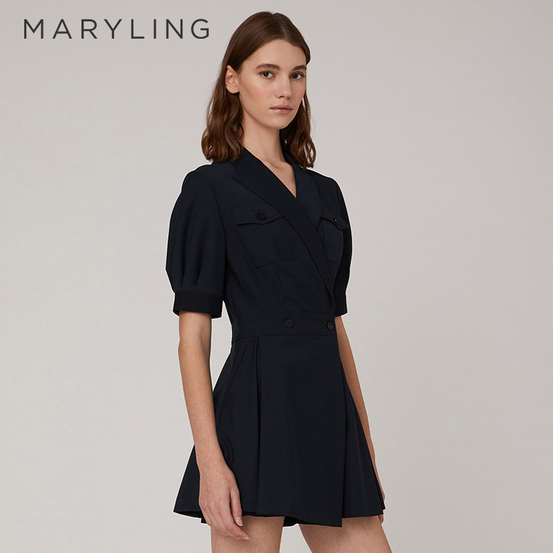 MARYLING玛俪琳夏季深蓝西装领A摆连体短裤A1CCW57120