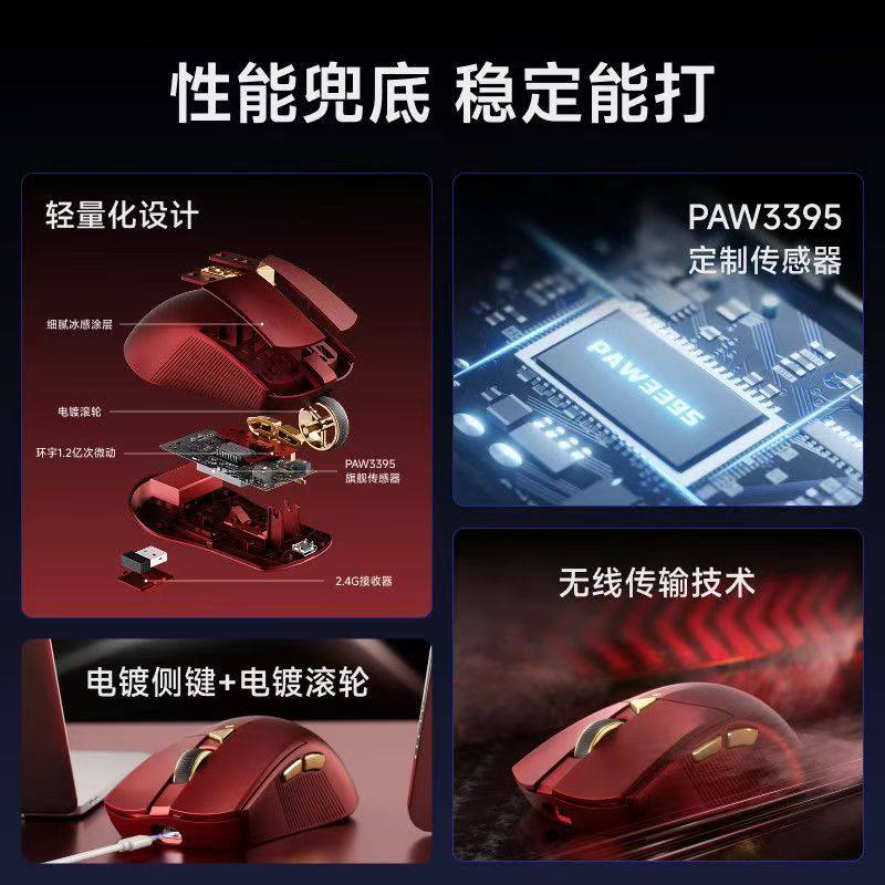 前行者GS01轻量化电竞游戏鼠标无线蓝牙三模游戏办公适用中小手