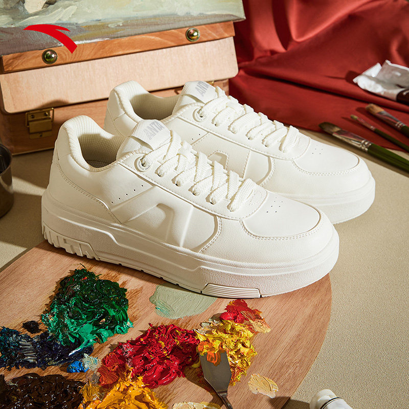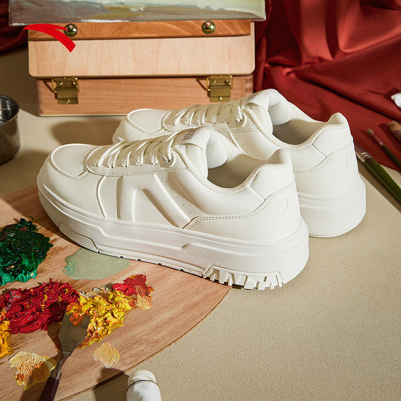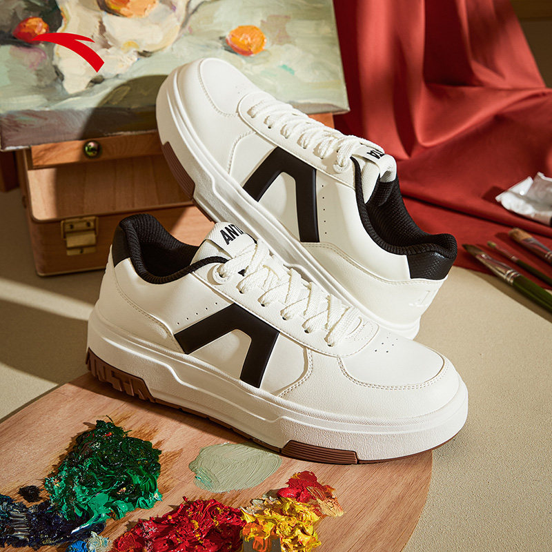 安踏A道丨低帮厚底增高板鞋男简约撞色小白鞋百搭男鞋112548026