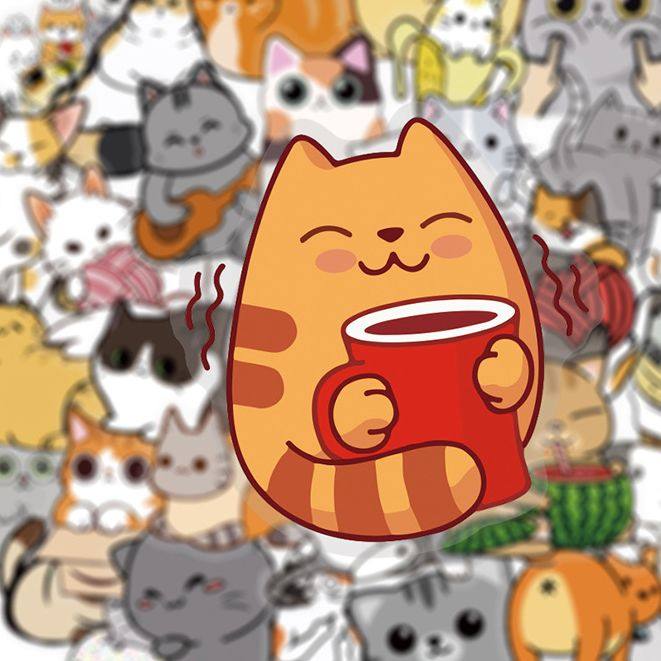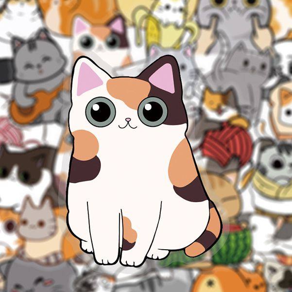 100张猫咪PET贴纸卡通可爱萌宠小猫贴画diy桌面手账本手机壳
