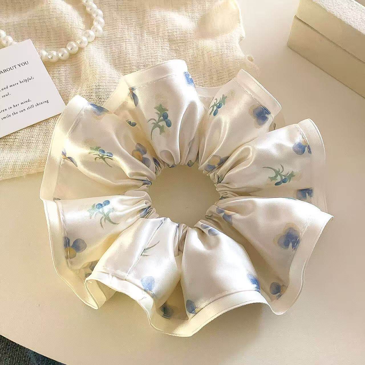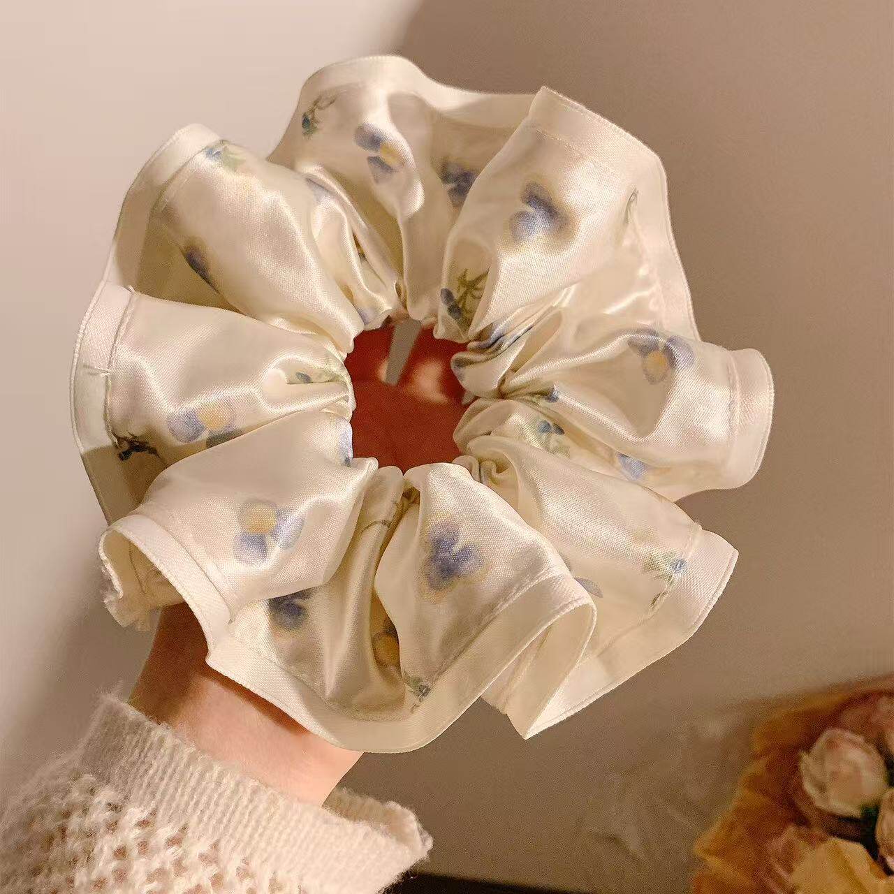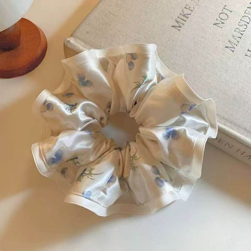 法式缎面碎花大肠发圈女高级感低马尾头绳2026新款高端发绳头饰品
