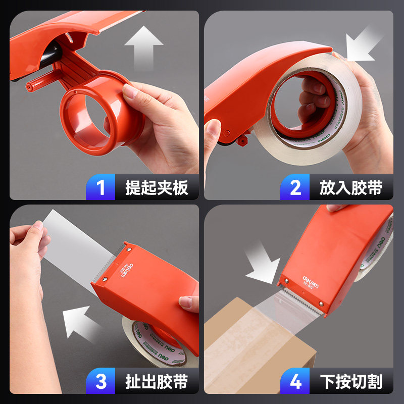 得力封箱器透明胶带切割器大号宽胶带物流打包器胶带机蓝红工具