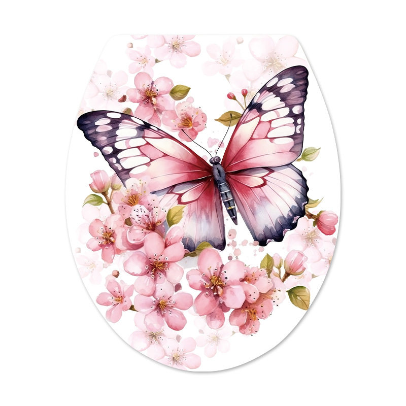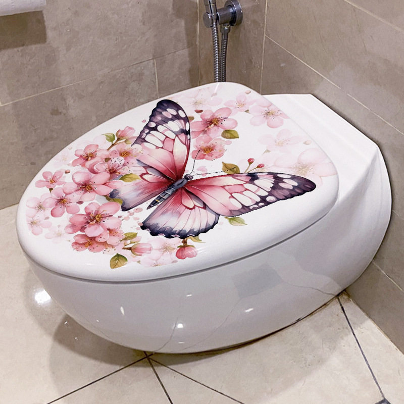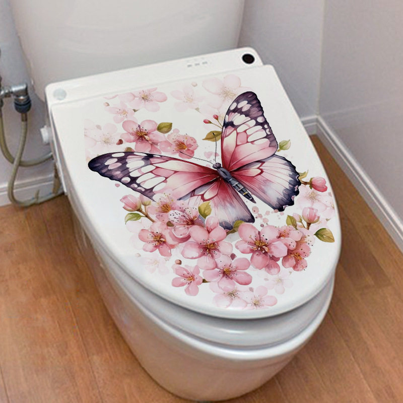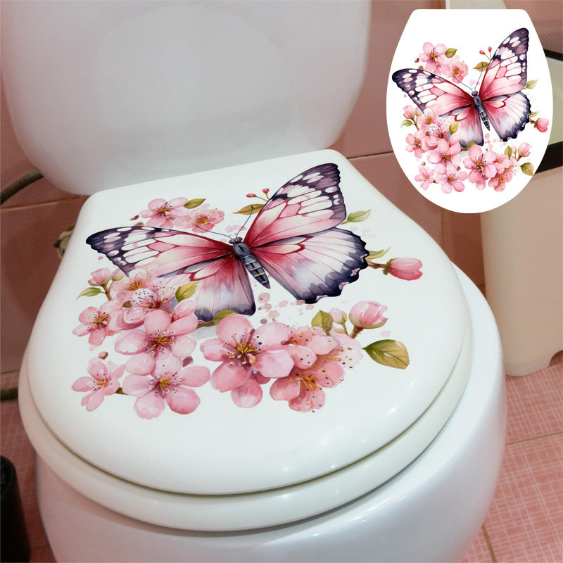 卉之彩MT34031蝴蝶桃花墙贴家用马桶盖贴纸厕所卫生间家居美化贴