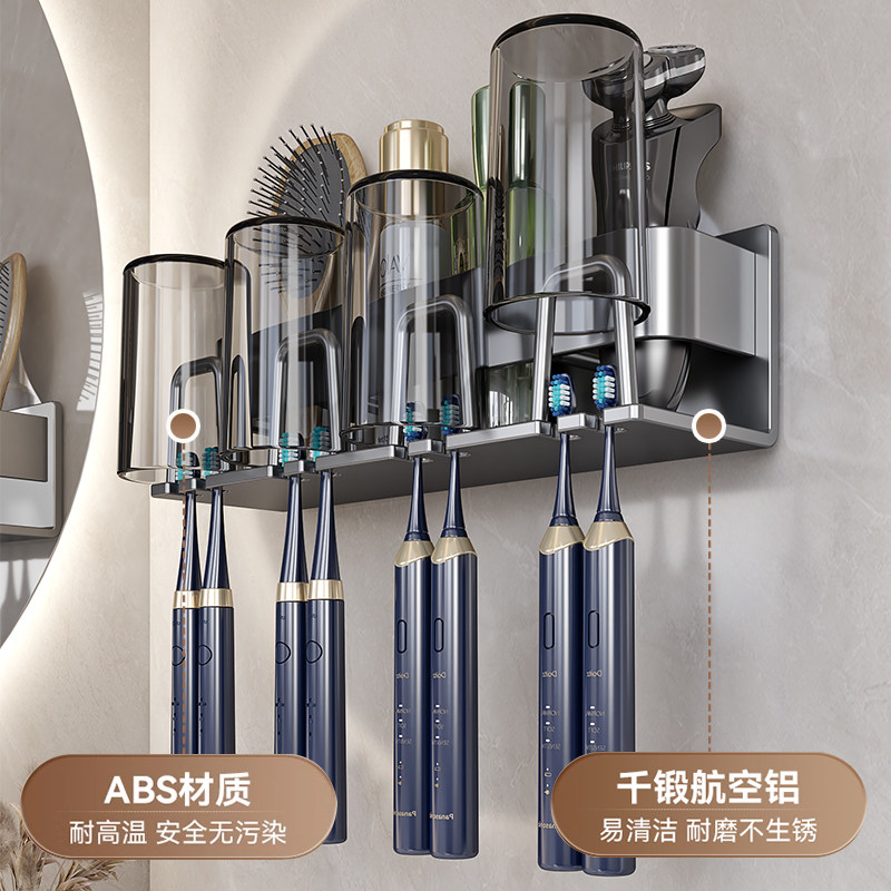 电动牙杯牙膏牙刷架子置物架家用套装免打孔卫生间浴室漱口杯壁挂