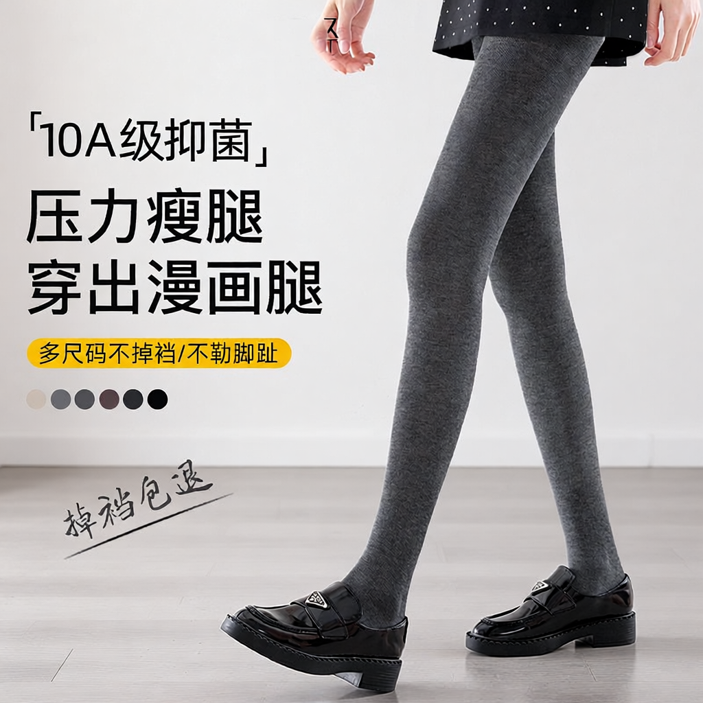菇娘家澳洲美丽诺羊毛灰色打底裤连裤袜女秋冬加绒保暖外穿压力袜